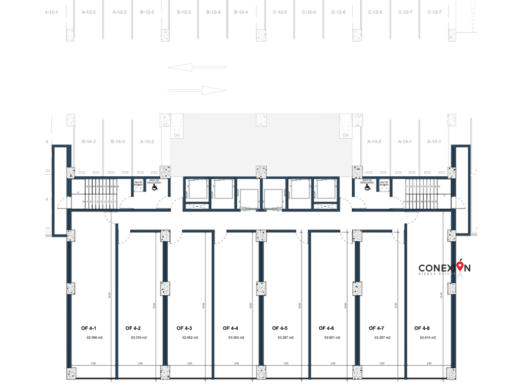 Oficinas desde 78m2 de construcción en total (53m2 interior + 25m2 de estacionamiento).