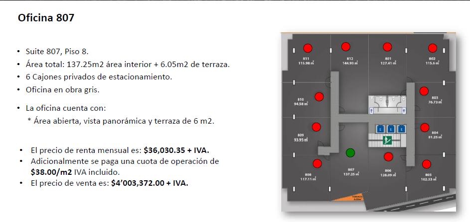 •la oficina cuenta con: area abierta, vista panorámica y terraza de 6 m2