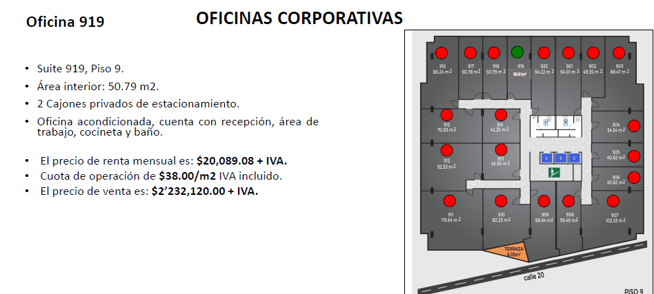 -Luxus Corporate Center se encuentra compuesto de 72 oficinas que van desde los 31 m² hasta 1 342 m² (Piso Completo)