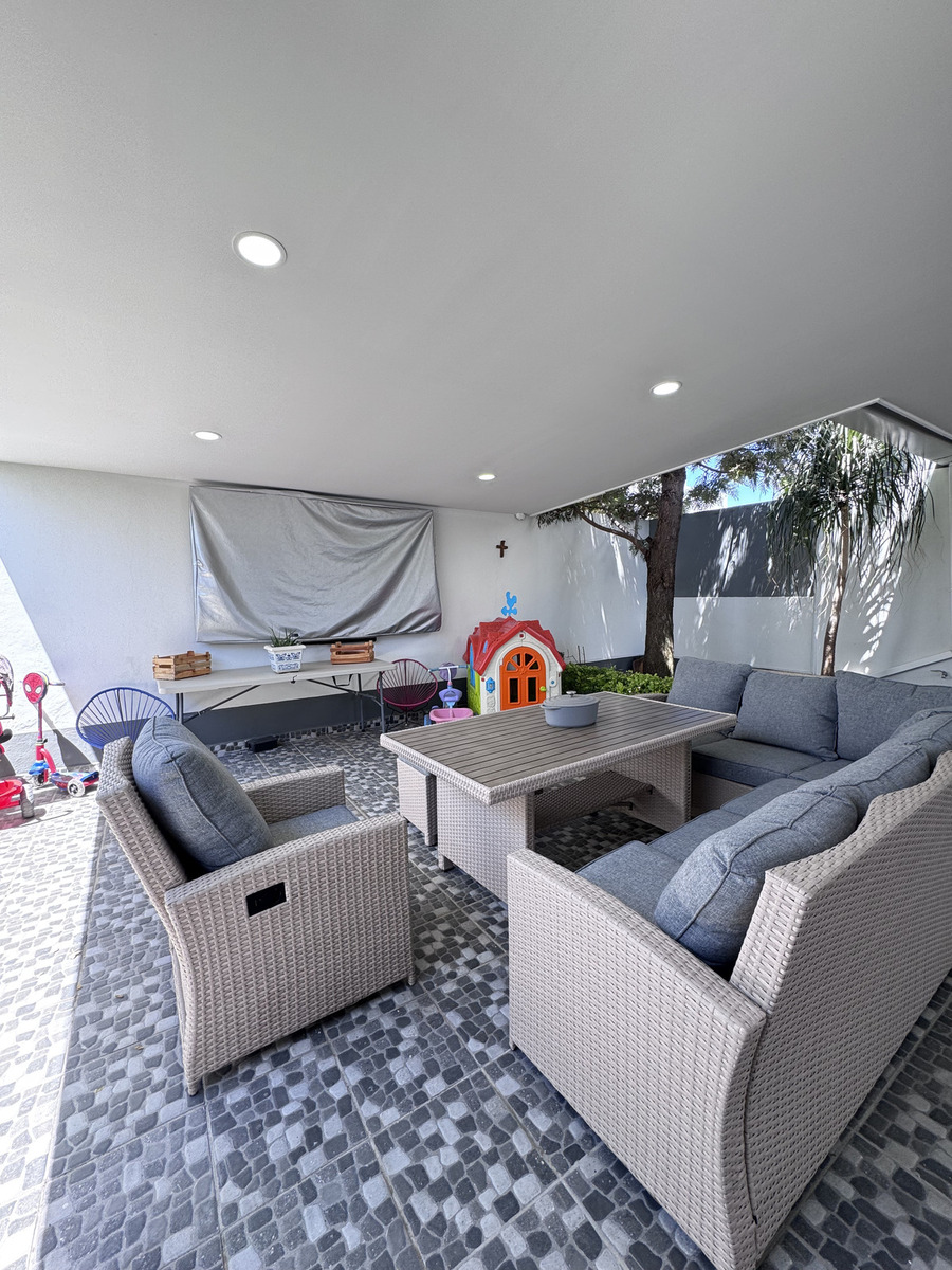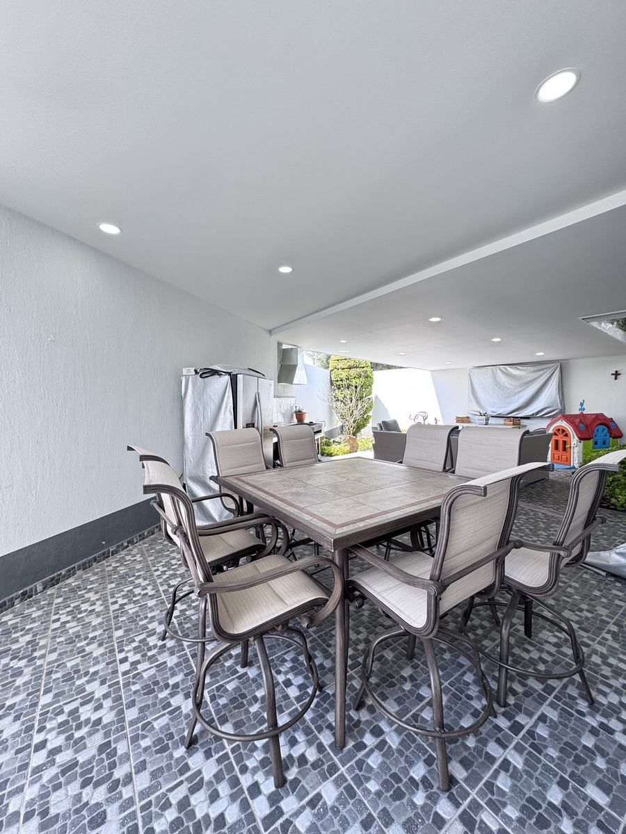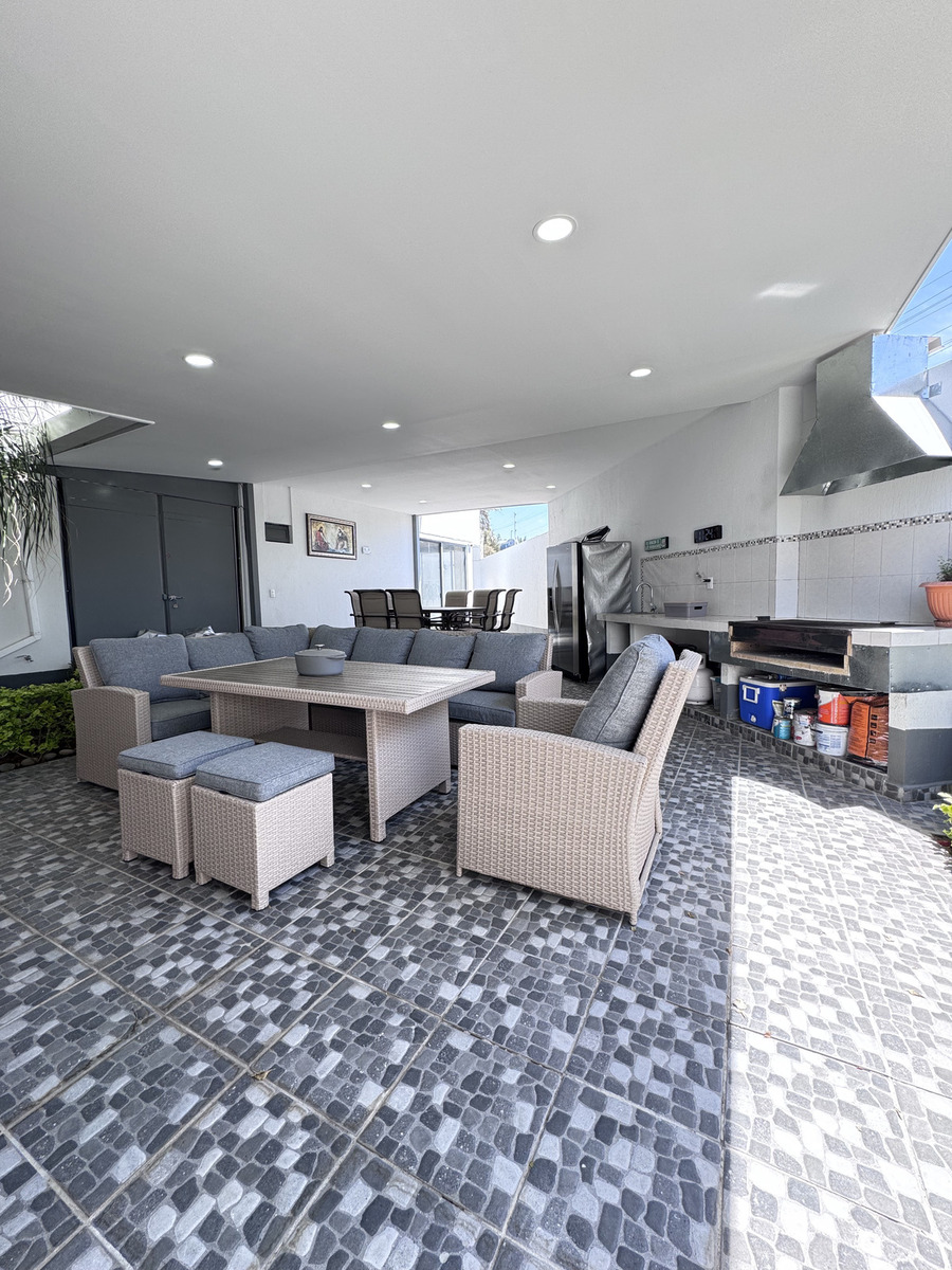 AMPLIA TERRAZA TOTALMENTE EQUIPADA, CUENTA CON BARRA CON ASADOR, SALIDAS PARA REFRIGERADOR, MEDIO BAÑO PARA QUE TUS VISITAS NO INGRESEN A LA CASA, VITRO PISO EN TODA LA TERRAZA, ENTRE MAS COSAS.