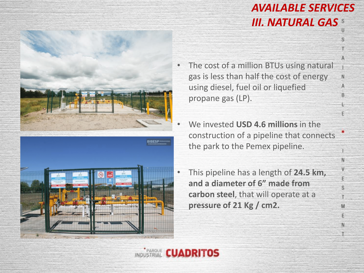 12. SERVICIOS DE GAS NATURAL DISPONIBLES