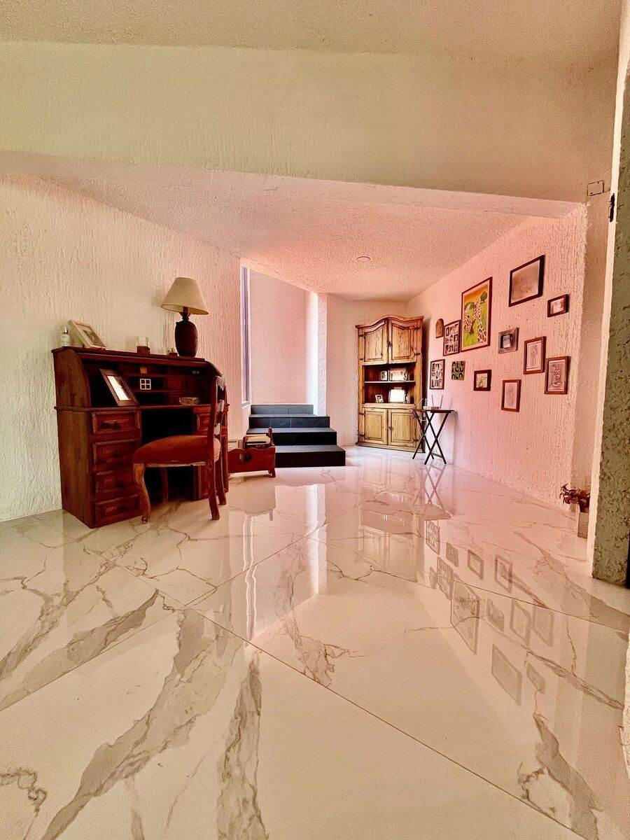 Al ingresar a la propiedad, serás recibido por una acogedora salita privada, ideal para relajarte o incluso convertirla en tu propia oficina en casa. La planta baja también cuenta con una amplia sala que se abre a una encantadora terraza, desde donde podrás disfrutar de vistas panorámicas de exuberante vegetación.