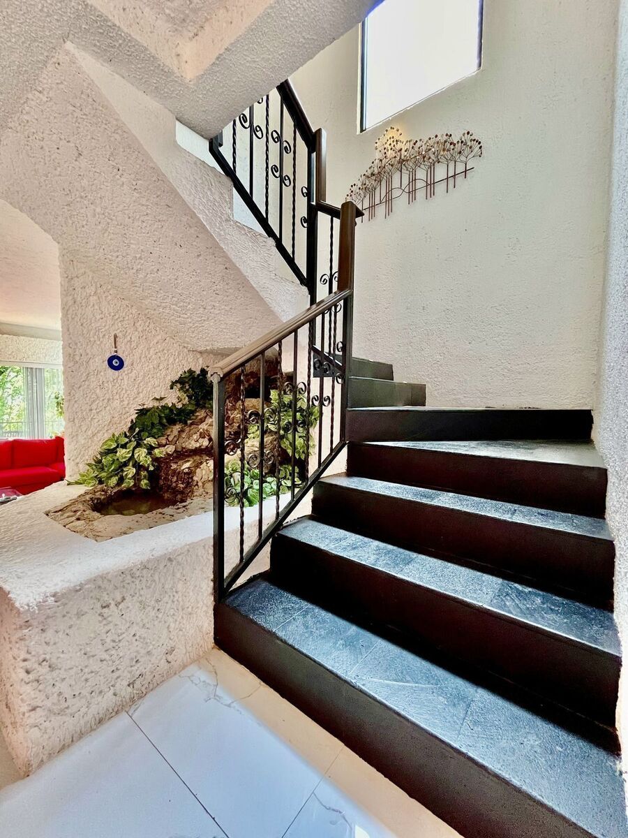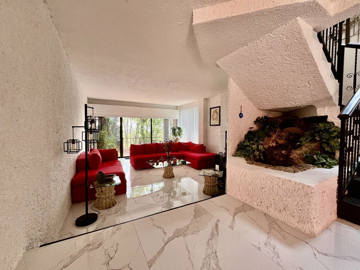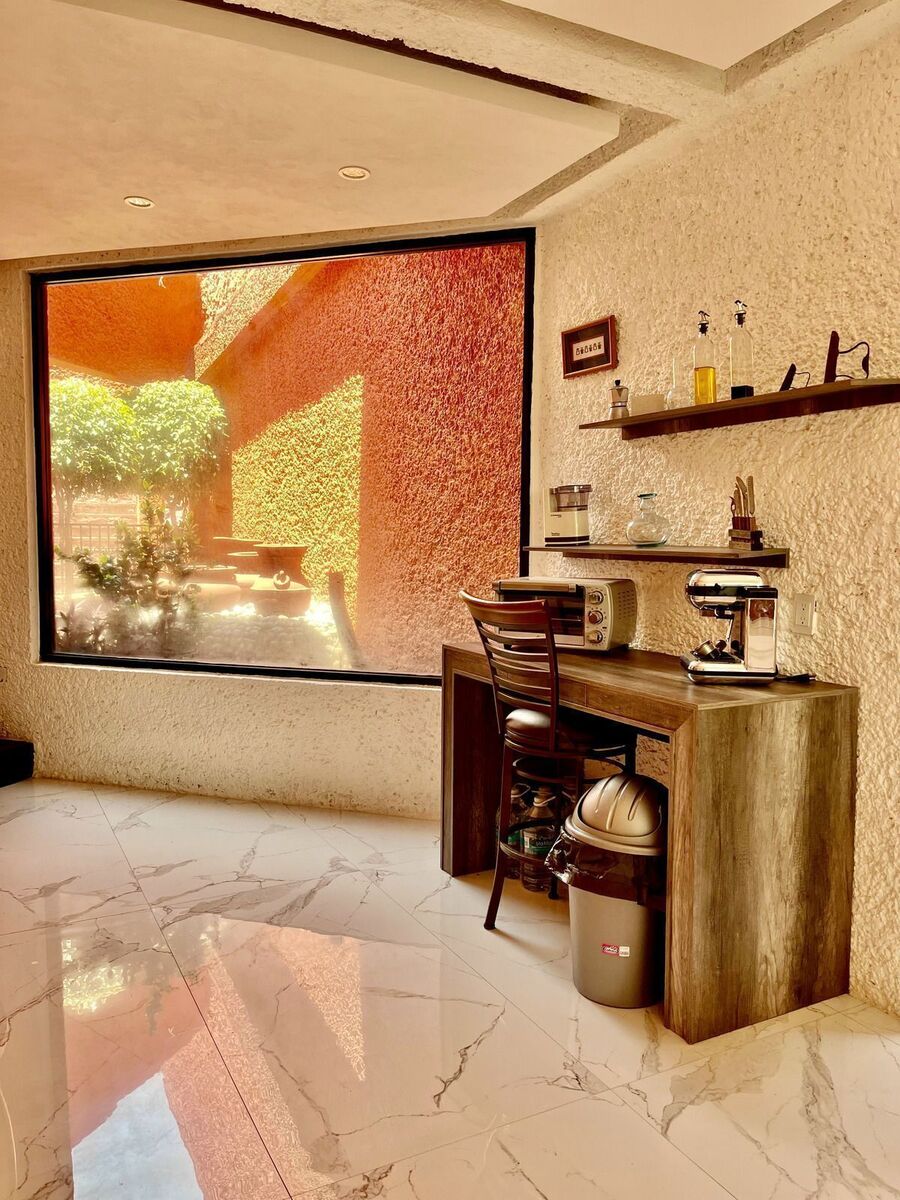 Al ingresar a la propiedad, serás recibido por una acogedora salita privada, ideal para relajarte o incluso convertirla en tu propia oficina en casa. La planta baja también cuenta con una amplia sala que se abre a una encantadora terraza, desde donde podrás disfrutar de vistas panorámicas de exuberante vegetación.