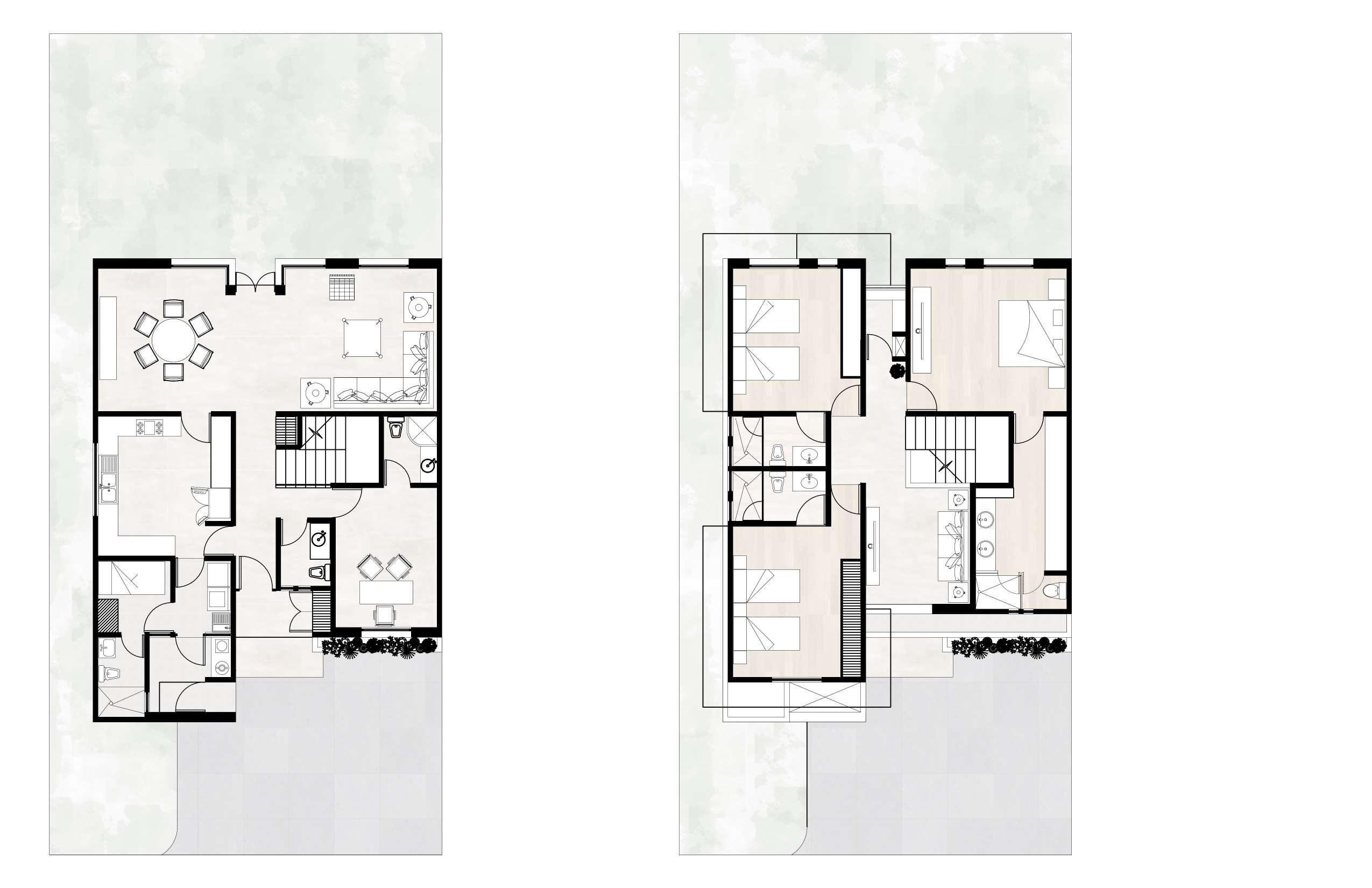 Planta baja: 1/2 baño, habitación o estudio con baño completo, sala, comedor, cocina con cubierta de granito, jardín, cuarto de lavado y de servicio con baño, pasillo de servicio, bodega, estacionamiento techado, cisterna