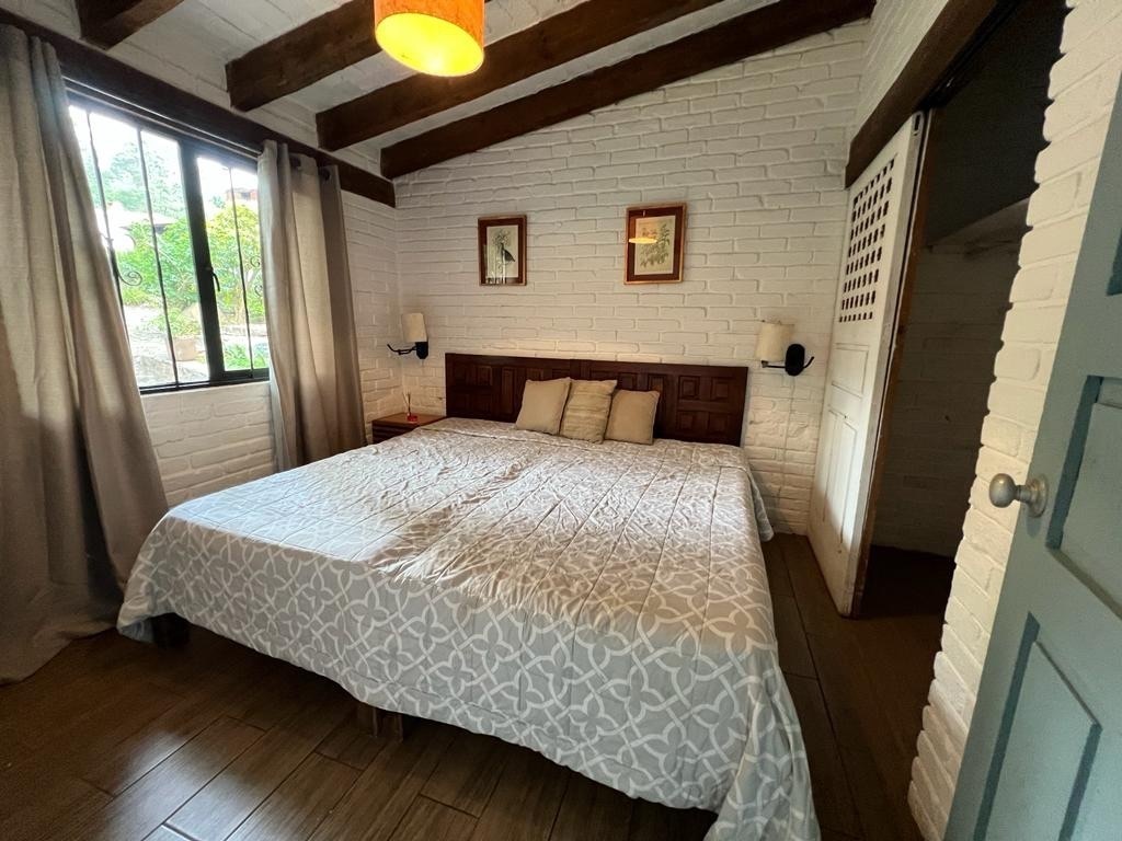 ubicada en Avandaro, con arquitectura estilo vallesano y buena decoración, está casa se renta totalmente amueblada, cuenta con cuatro recámaras la recámara principal cuenta con chimenea y balcón desde donde podemos apreciar una hermosa vista parcial al lago y al jardín.