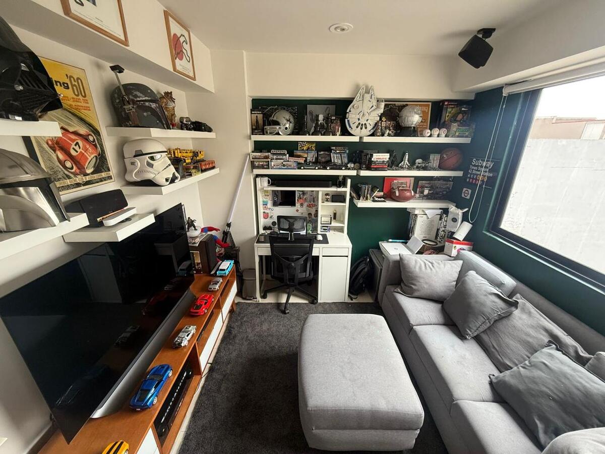Tercer recamara con baño completo (actualmente lo adaptaron como estudio-sala de tv, inicialmente funcional como cuarto de servicio).