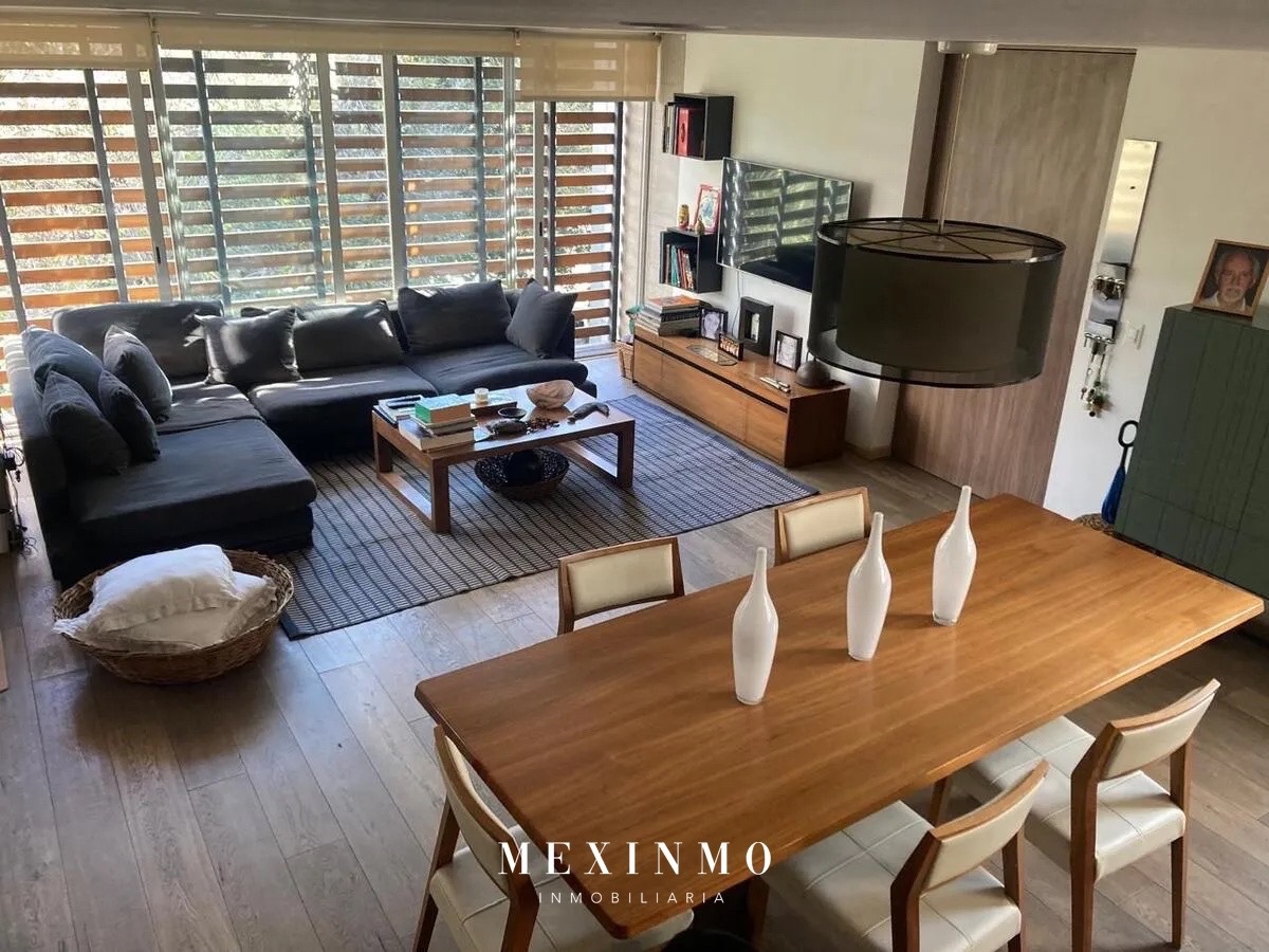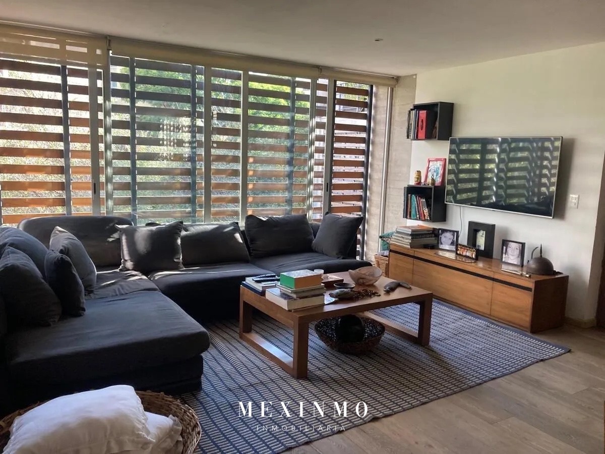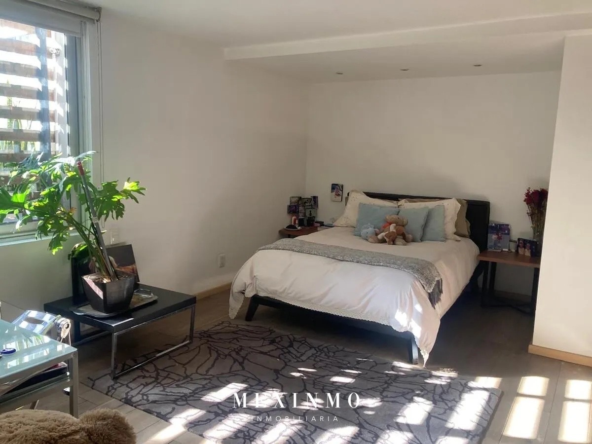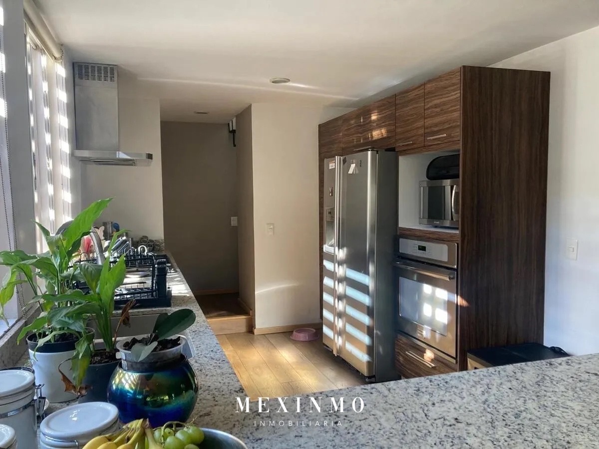 El penthouse se puede rentar amueblado o solo con electrodomésticos. En la planta baja, encontrarás dos recámaras que comparten un baño y un amplio vestidor. En la primera planta, hay una estancia amplia con cocina abierta y un baño de visitas. En la planta alta, se ubica la recámara principal, que también puede usarse como family room, con vestidor y baño muy amplio. Esta área da acceso a una terraza semi techada privada de 42 m² con una hermosa vista arbolada.