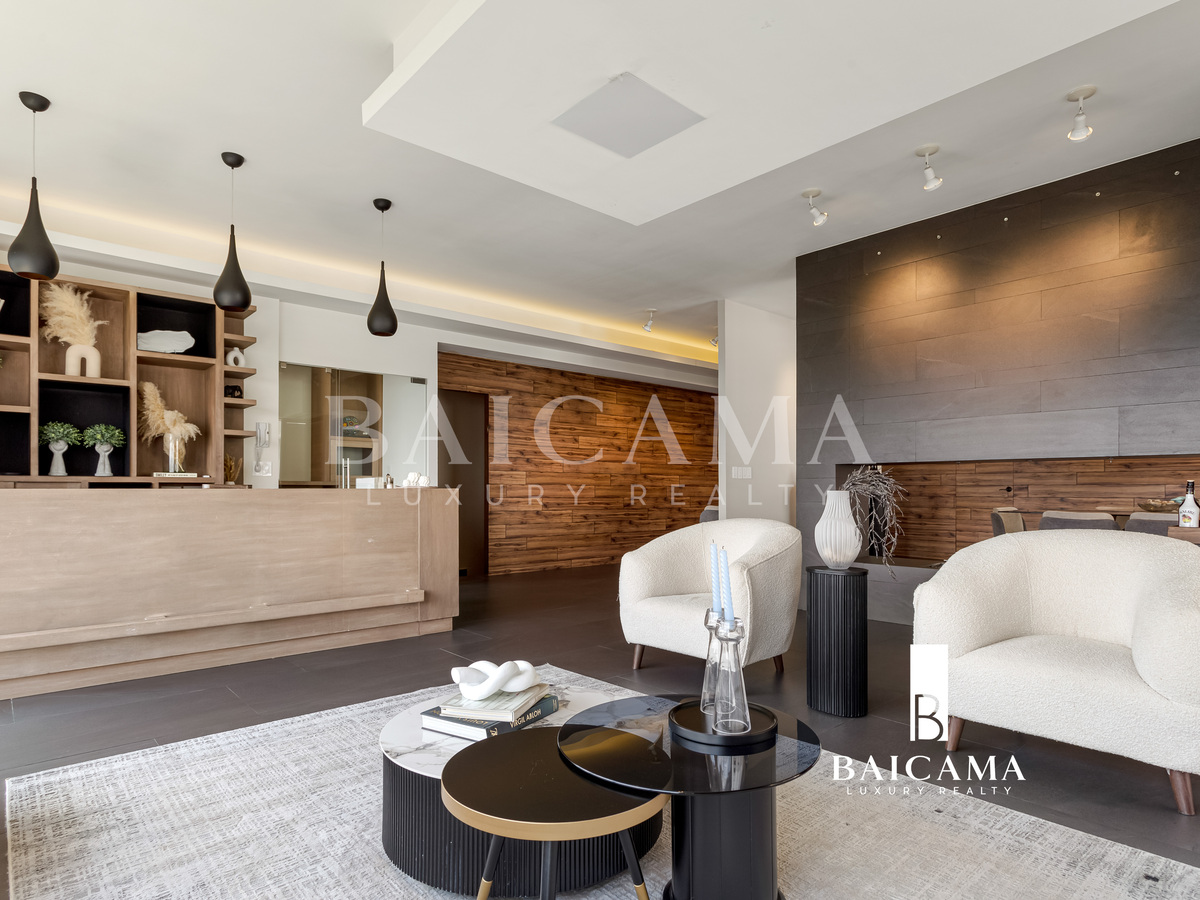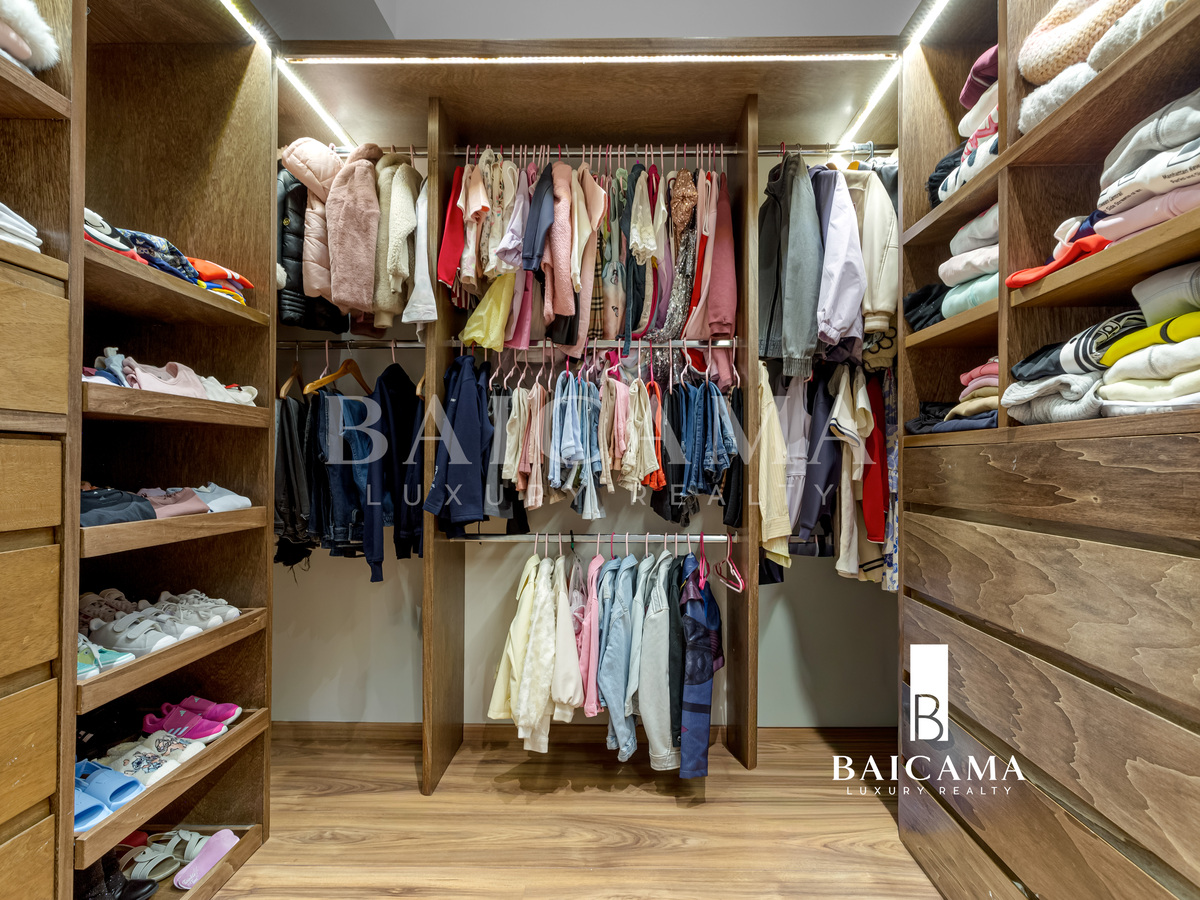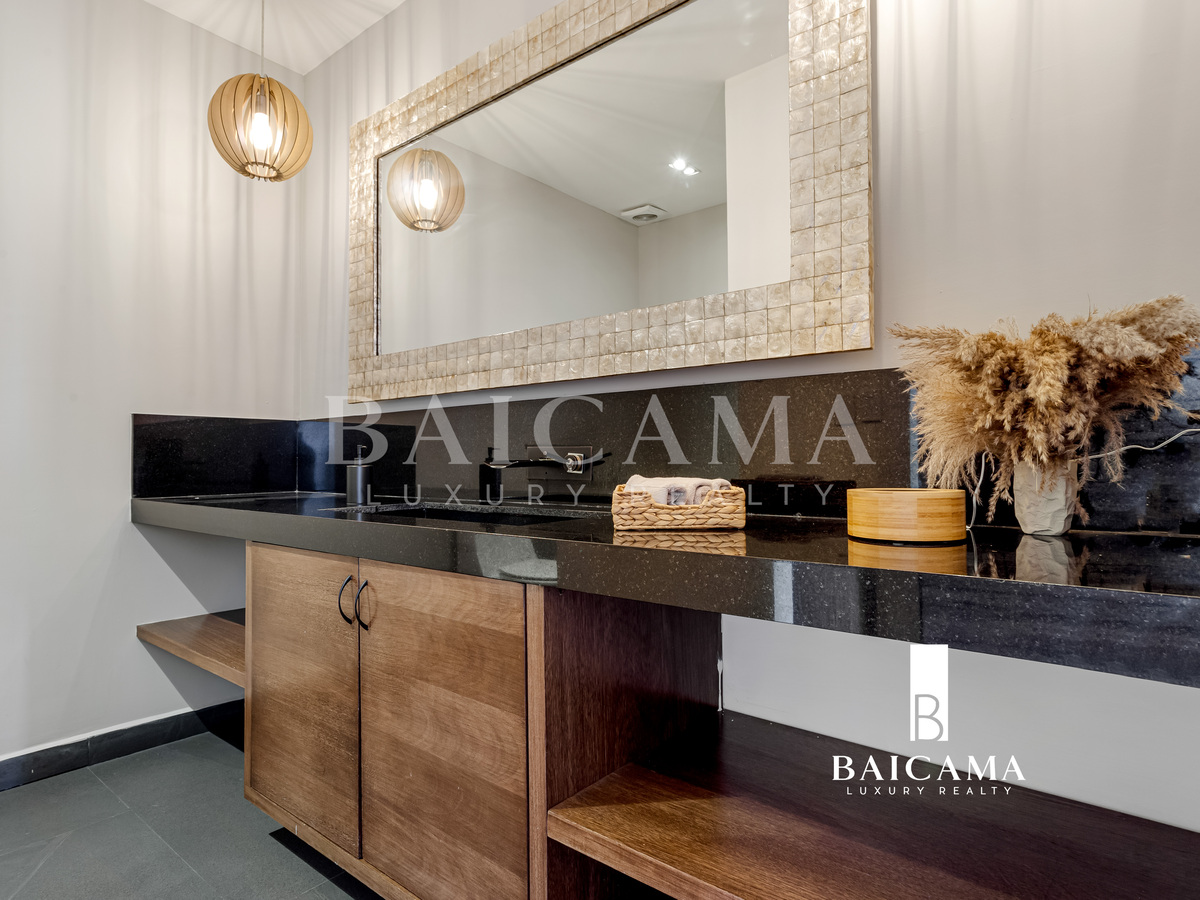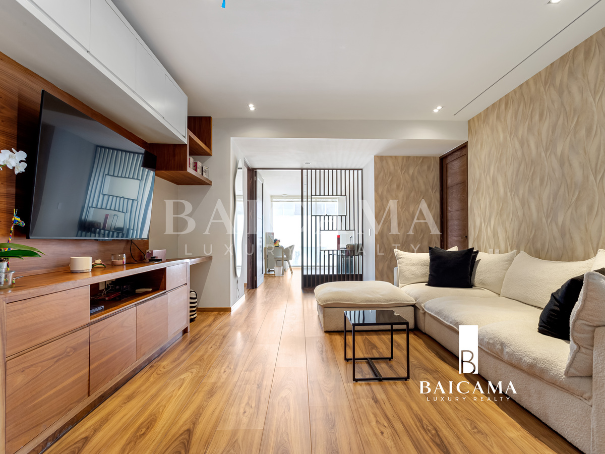 El nivel superior está concebido como un espacio social excepcional: una amplia sala y comedor enmarcados por ventanales de piso a techo, una cava con carácter, un bar con diseño escultural, y una terraza techada ideal para disfrutar atardeceres con total privacidad. La cocina de diseño contemporáneo cuenta con tres frentes de vista a la ciudad, dos alacenas y un diseño funcional que combina estética y comodidad. El área de servicio cuenta con dos cuartos de servicio de muy buen tamaño y área de lavado muy ampllia y funcional.