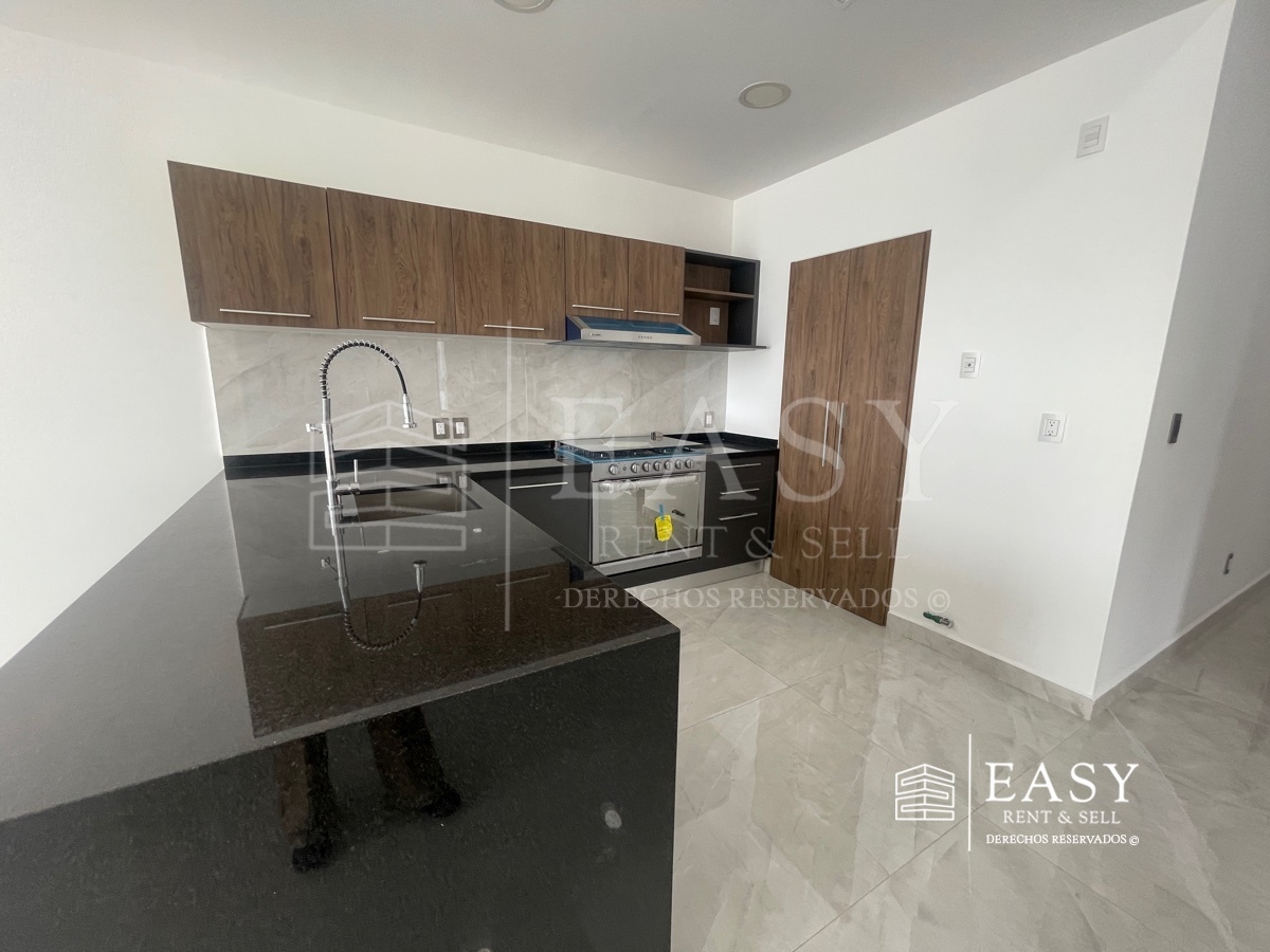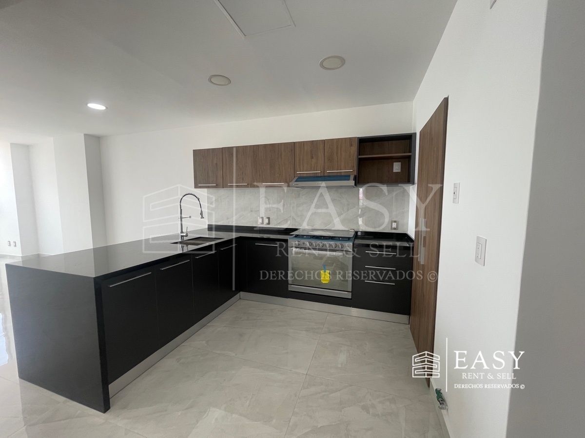 Amplia estancia con excelente iluminación natural, integrada a una cocina abierta de estilo contemporáneo.