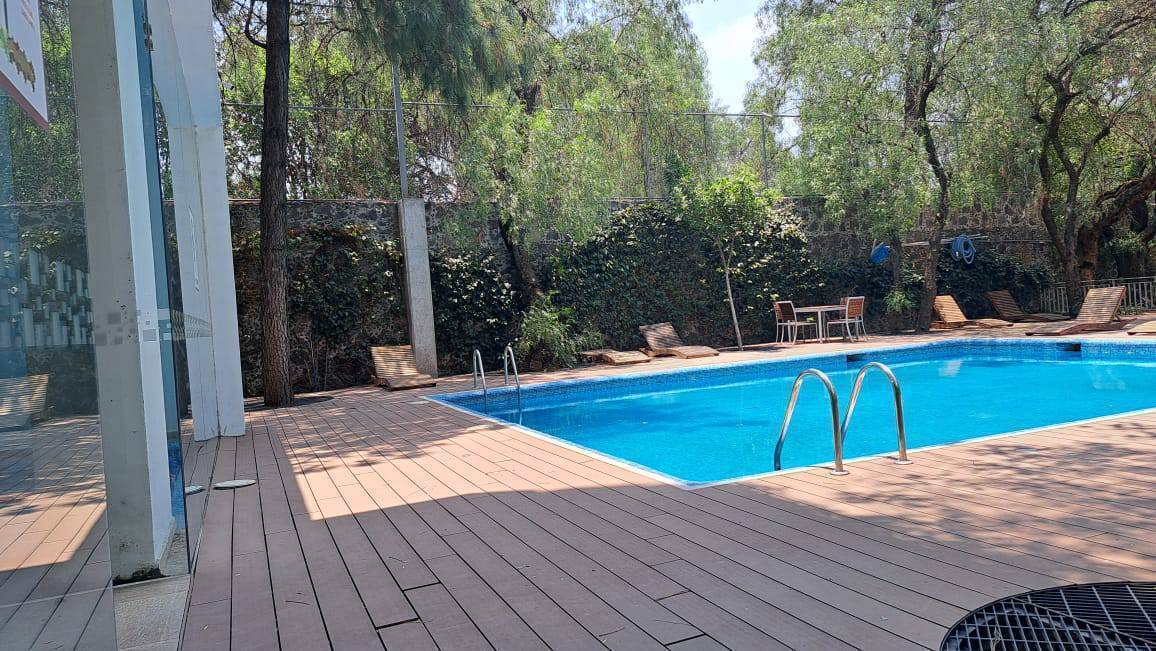 Departamento ubicado en la torre magnolias éste cuenta con dos niveles y 166 m² está distribuido en lo que es estancias sala comedor amplia con un balcón con vista al sur a la parte de Ajusco así como también cocina integral, en espacio abierto y una pequeña barra cuenta con área de lavado Y dos recámaras la principal con su baño completo así como un baño de visitas en la parte de arriba podemos encontrar una terraza de aproximadamente 40 m² siendo la mitad jardín. Finalmente contamos con dos lugares estacionamiento uno detrás de otro.