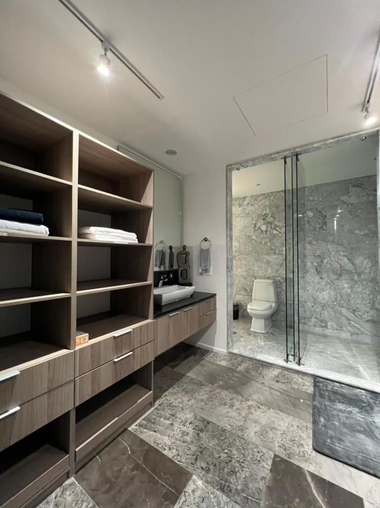 Alberca, gimnasio, salon de yoga, salon de juntas, área infantil con ludoteca y juegos al aire libre, jardin especial para pasear perros.