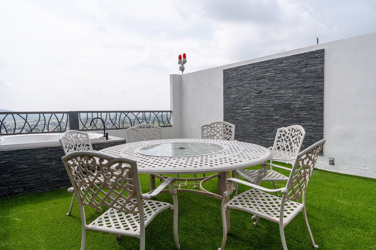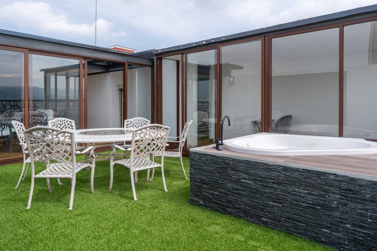 En planta alta te espera un espectacular skyview con terraza, jacuzzi y un estudio.