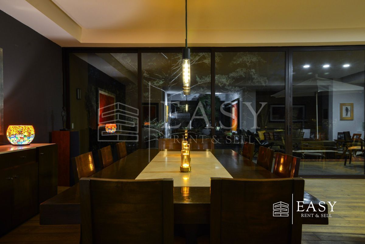 Planta Baja: Al ingresar, te recibe una amplia sala-comedor con acabados de lujo, que se integra perfectamente a una hermosa terraza de 38 m², ideal para disfrutar del aire libre. En esta planta también se encuentra un baño de visitas, una acogedora biblioteca, una cocina moderna equipada con antecomedor y pantry, además de un cuarto de servicio con baño y área de lavandería.