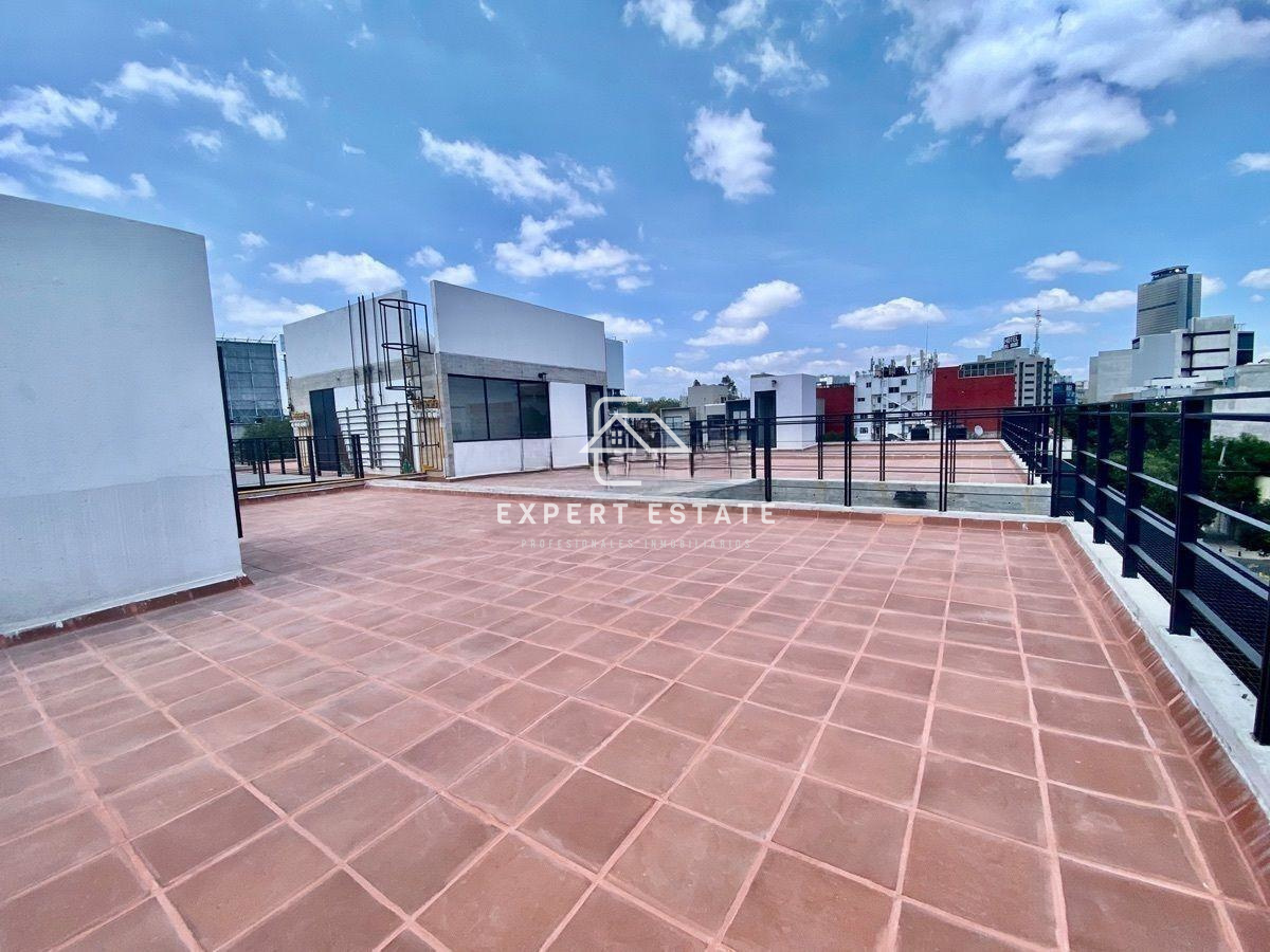 Your new home with a private roof terrace and within walking distance of everything! We present a beautiful, secure, and superbly located penthouse with a private roof top in a 5-story building. It has 91 m2 of living area and 166 m2 total, in the Cuauhtemoc neighborhood, one of the most traditional areas of the city. A modern and avant-garde design building which is just blocks from Paseo de la Reforma, the tourist corridor, shopping and financial centers, as well as schools, restaurants, hotels, galleries, theaters, and more. It consists of a bright living/dining room with a pleasant balcony that perfectly integrates with the social area. It has a beautiful open kitchen equipped with granite countertops and 2 comfortable bedrooms, the master with an ensuite bathroom and the other that shares a bathroom with the social area. The secondary bedroom also has a balcony and closet. A practical ventilated laundry area and 2 parking spaces that do not obstruct anyone else. You have to see its spectacular, exclusive rooftop with a superb view. The building has 24/7 security and CCTV. Call Elisa Mendez today and let's go see it, you'll love it.