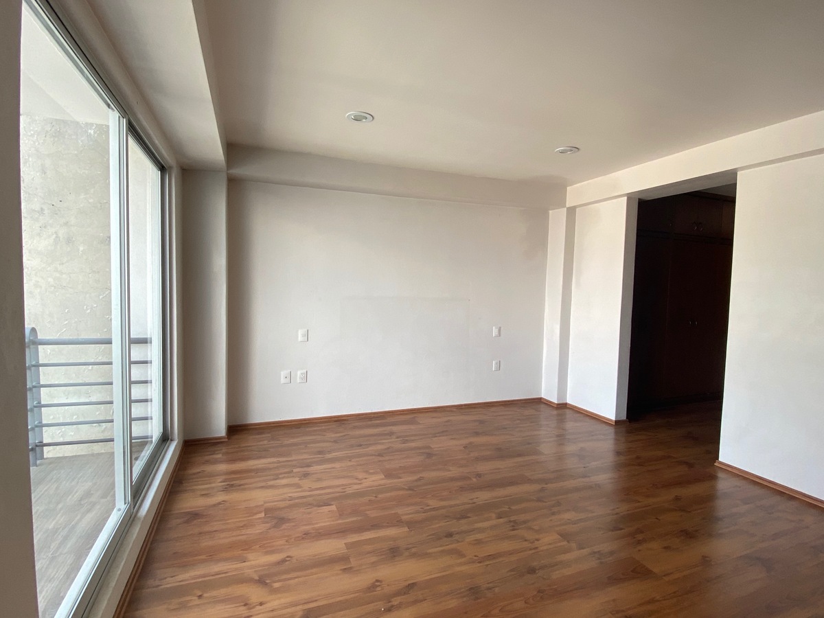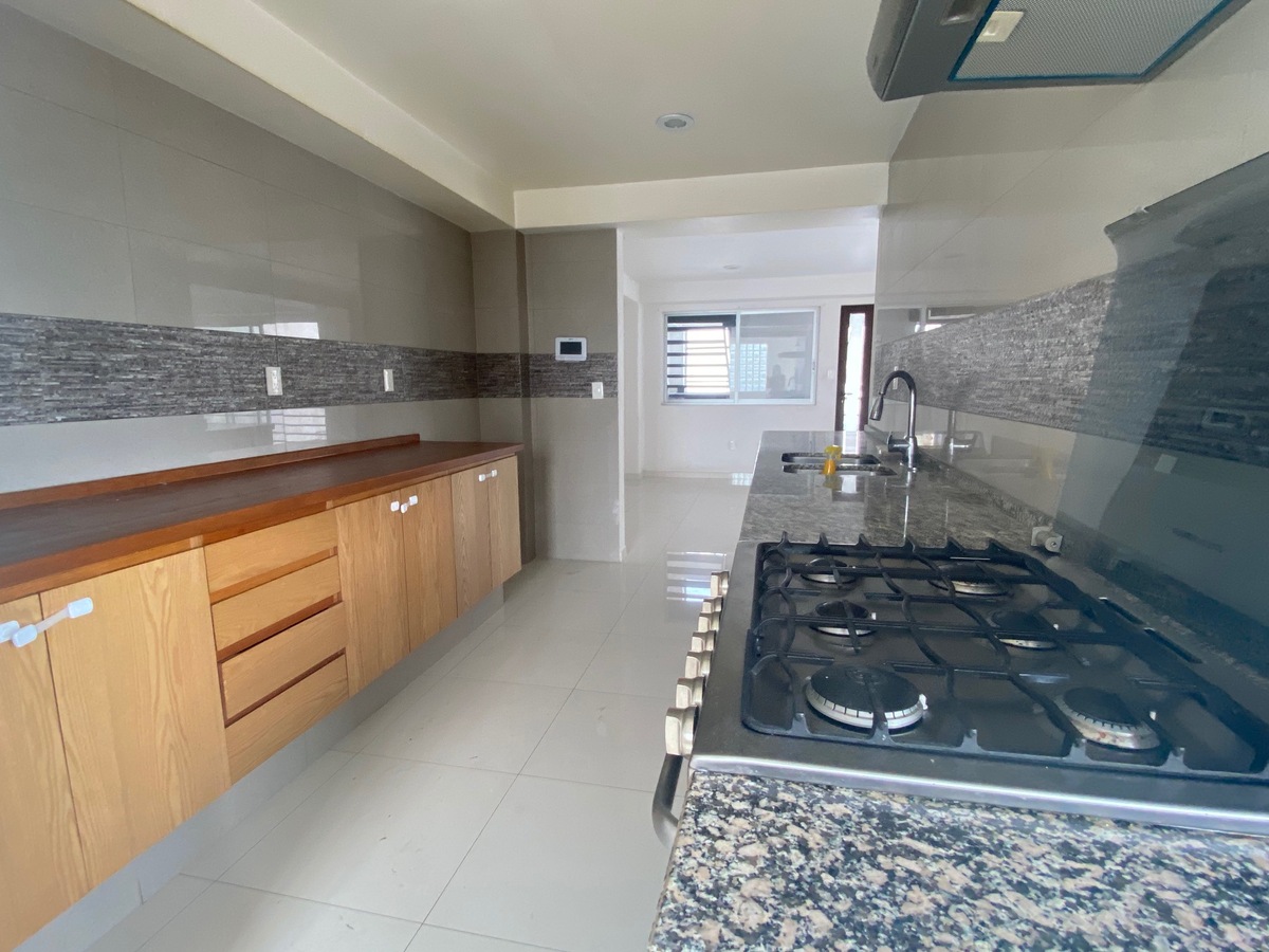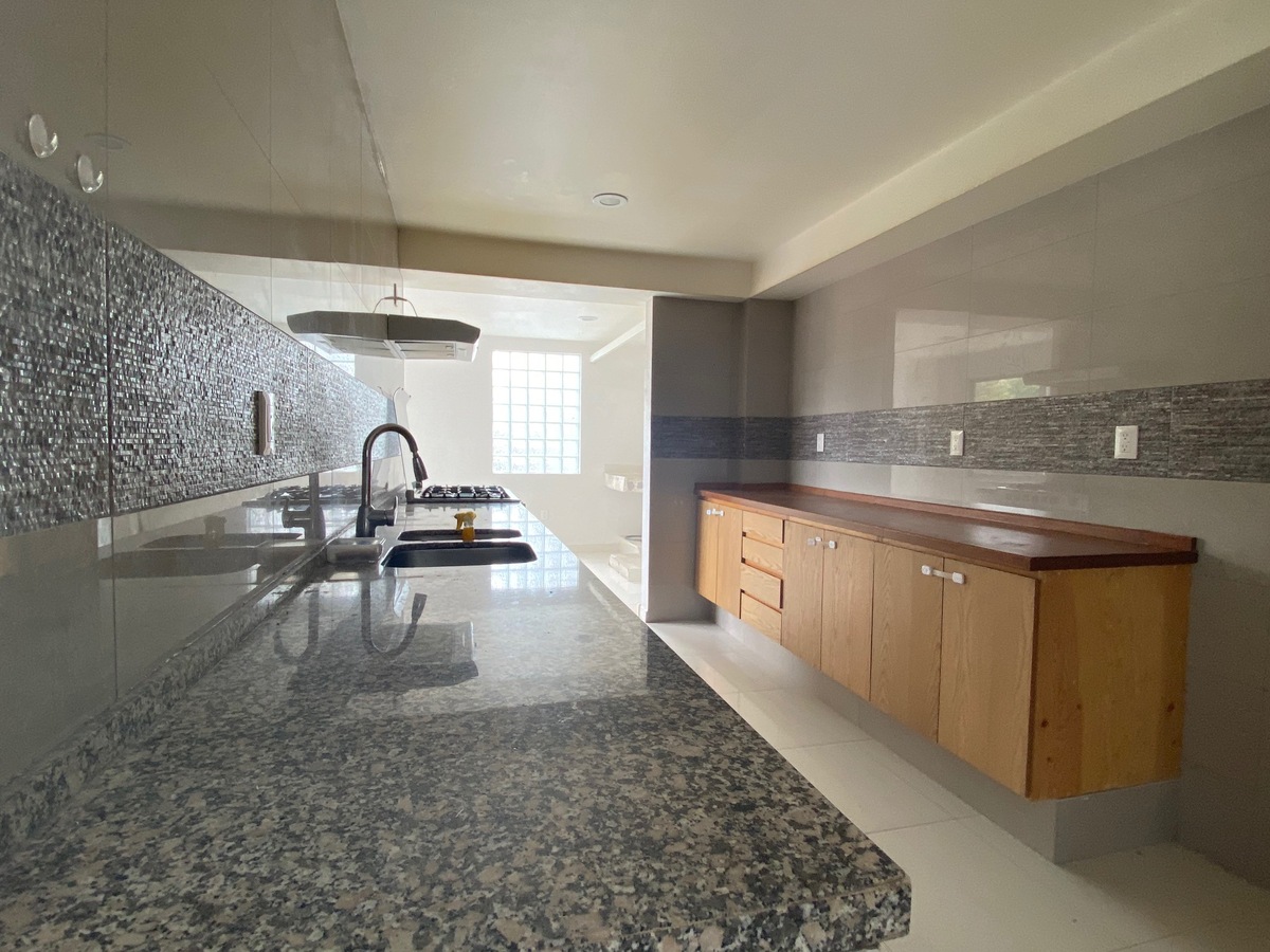 El inmueble cuenta con 100 m2, sala - comedor con ventanería de aluminio de piso a techo y balcón en la estancia, cocina integral equipada con barra de granito y alacenas de alto diseño.