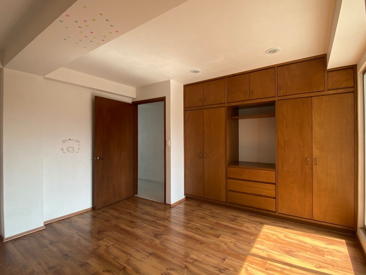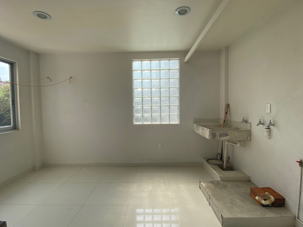 2 recámaras muy amplias con balcones, clósets de madera y piso laminado, 2 baños completos con acabados de loseta y canceles, extensa área de lavado con ventilación natural y espacio para bodega.