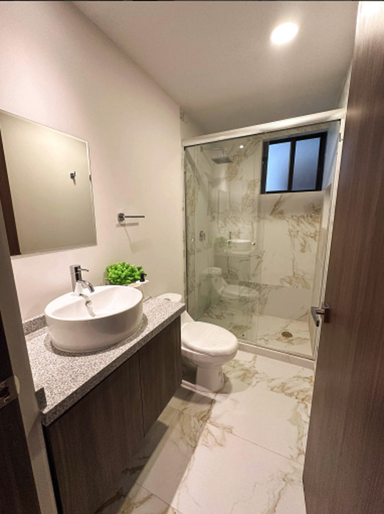 Cuenta con 2 recámaras, la principal con vestidor y baño, la segunda recámara comparte baño con área social, sala-comedor, cocina, área de lavado, bodega, 1 estacionamiento.