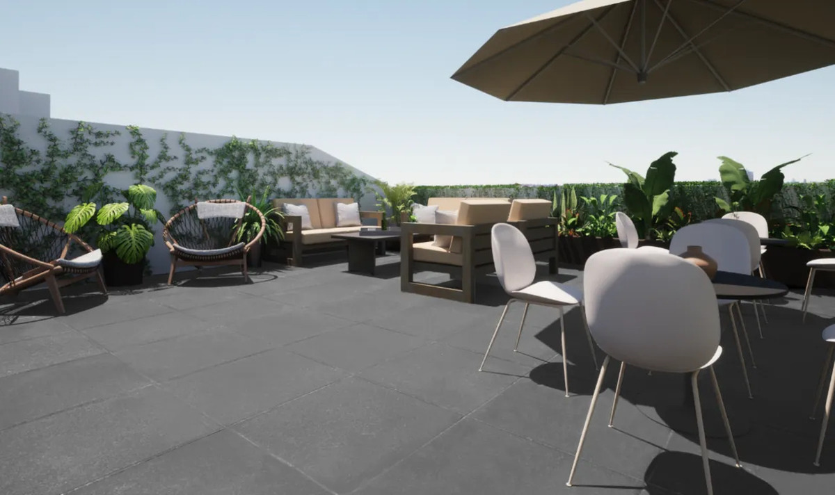 Además cuenta con caseta de vigilancia, lobby, roof garden común.