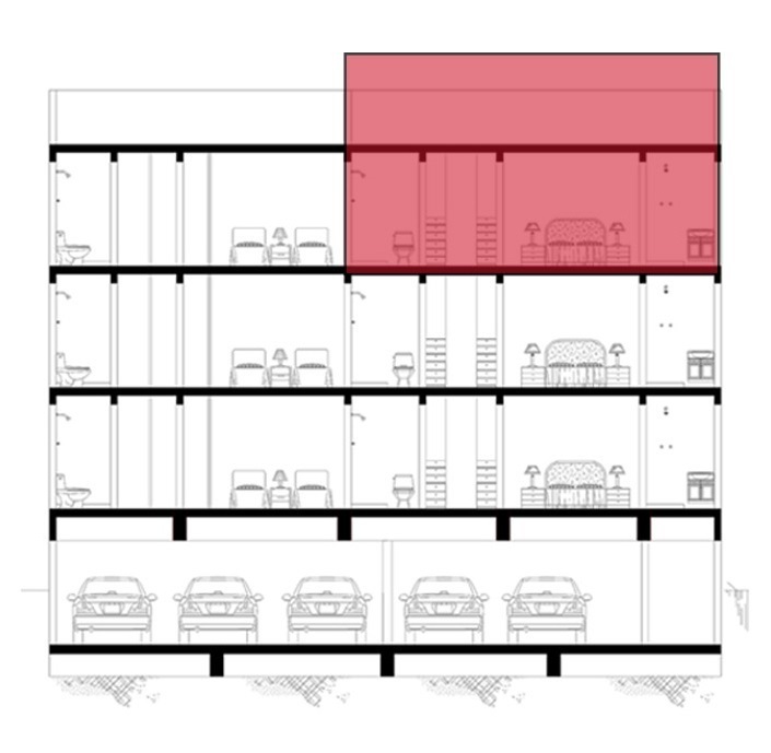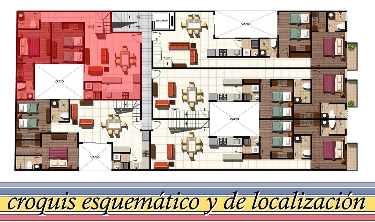 15 departamentos, edificio de 3 niveles con 5 departamentos por piso .