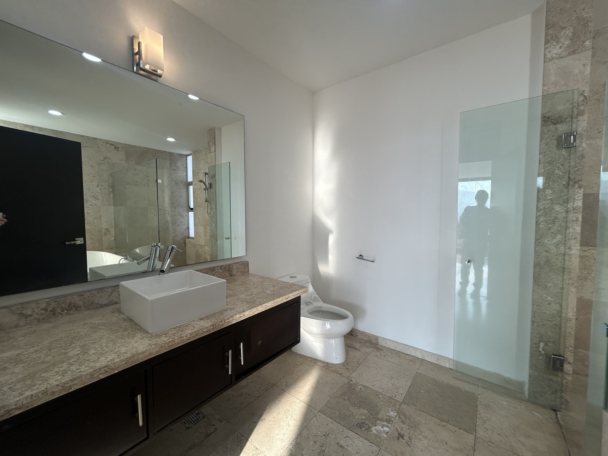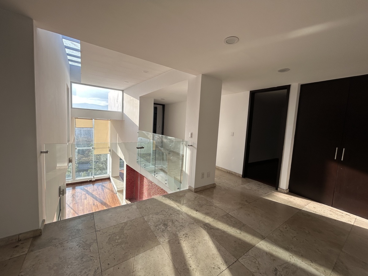 Cinco recámaras, cada una con baño, la principal con vestidor y terraza privada. Family, salón de juegos y jardín en la parte trasera de la casa.