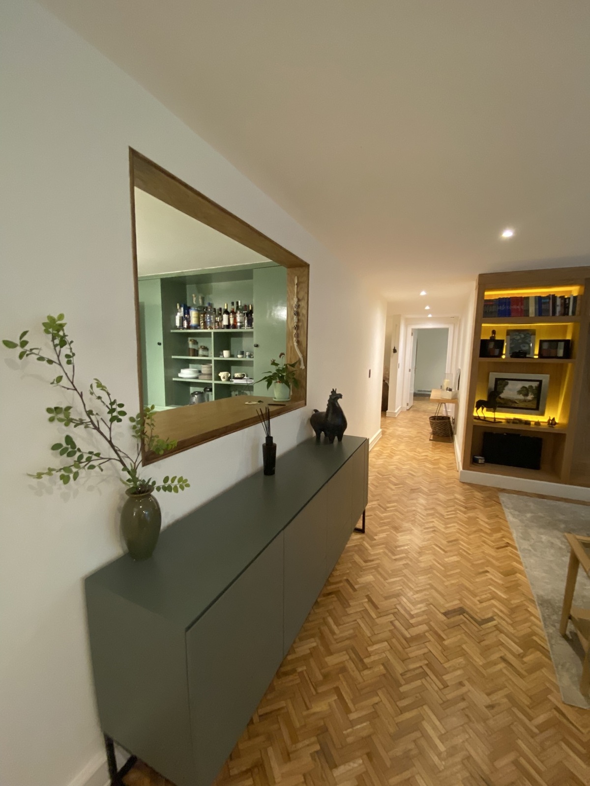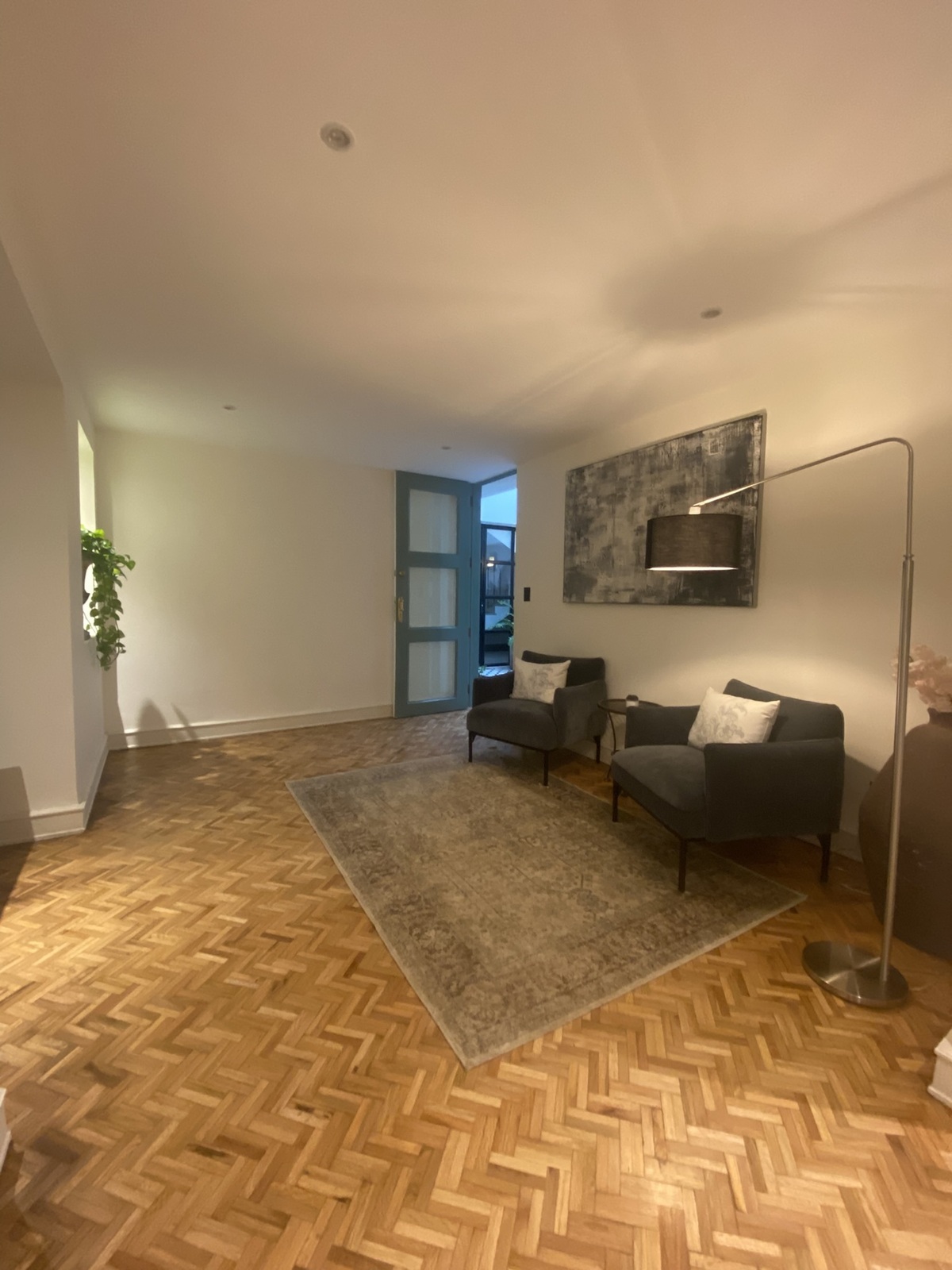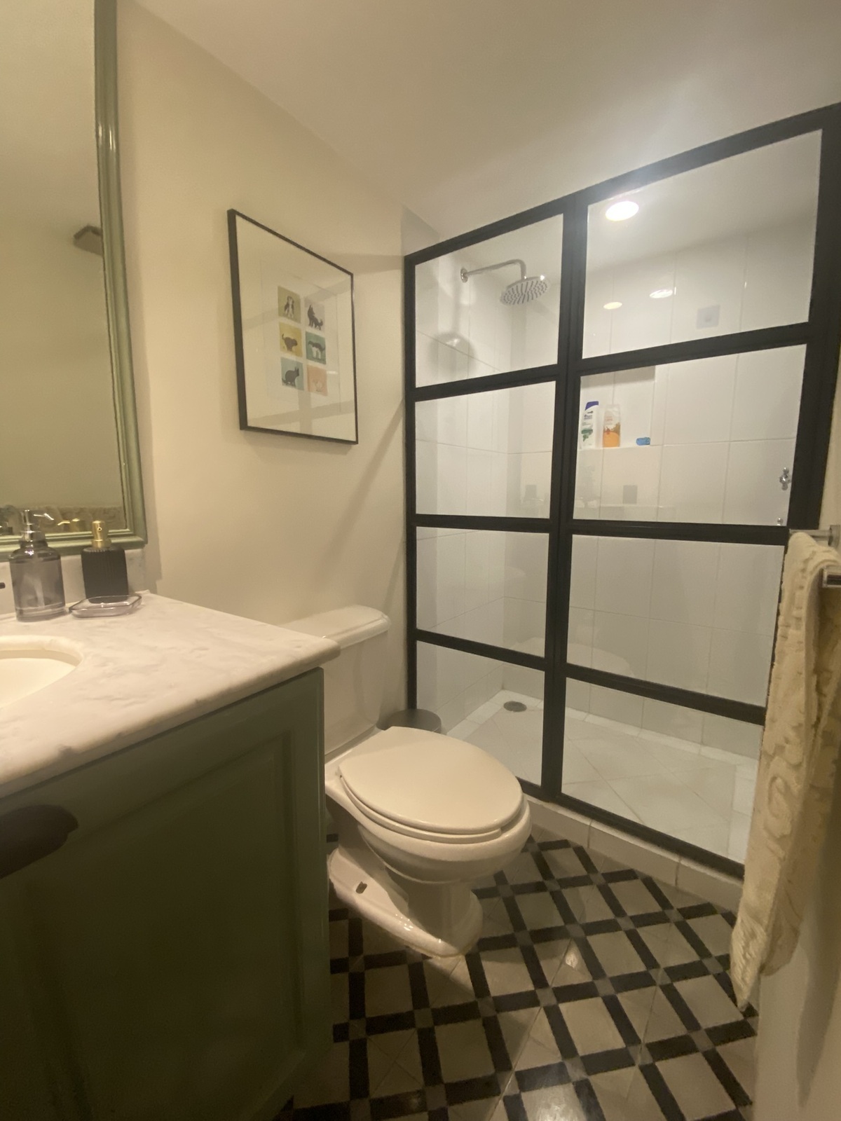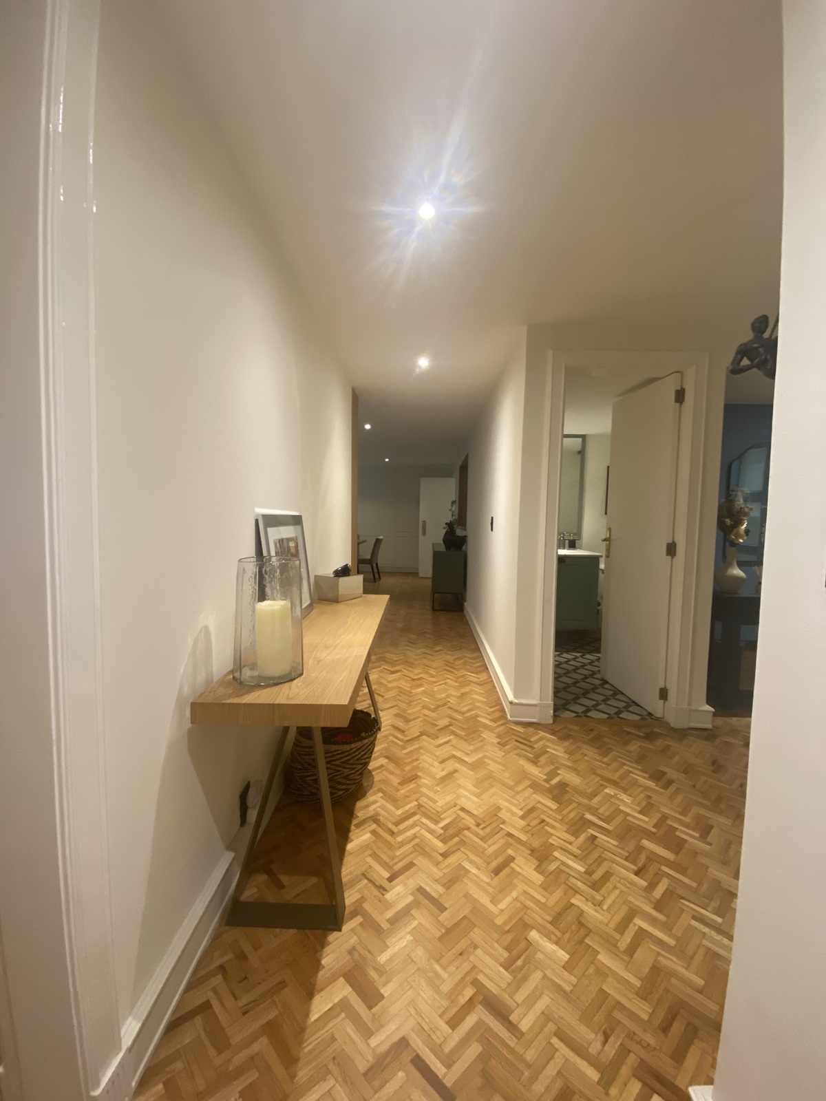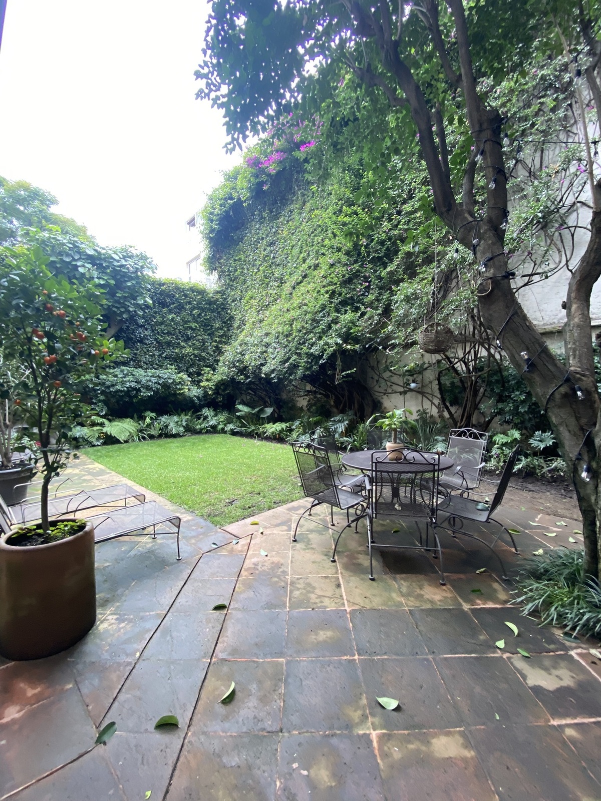 Una joya de departamento, la entrada es por una terraza privada llena de plantas y una fuente, preciosos acabados, pisos de madera, amplio recibidor con baño completo.