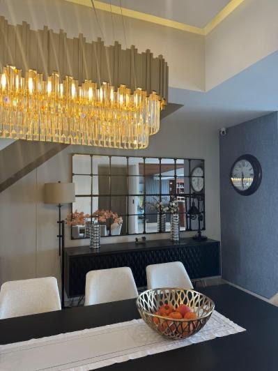 En PB cuenta con la sala con techo a doble altura, comedor amplio 10-12 personas, Bar con una barra moderna con vista al campo de Golf de Bosque Real.
