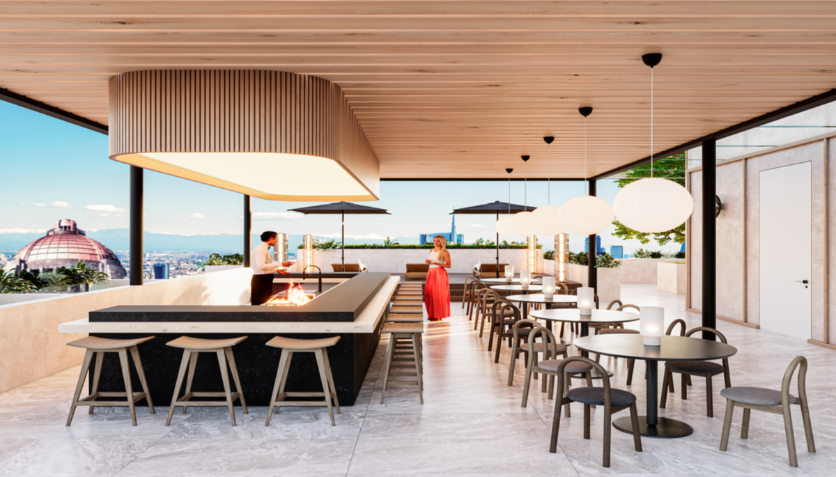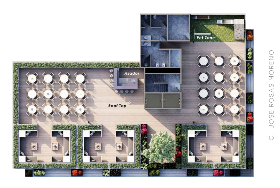 Las amenidades de Park San Rafael: Roof Top con área lounge y asador, Pet zone con espacio para grooming, Coworking y Bike-parking.