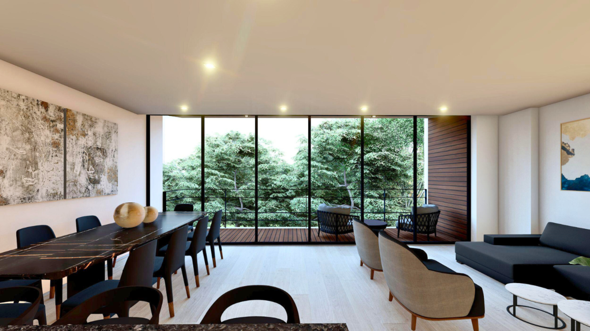 Ubicado en la calle Aristóteles, entre Horacio y Homero, este es el último departamento en esta exclusiva preventa. Su distribución admite perfectamente 3 recámaras amplias, cada una con su propio baño. La cocina estará abierta hacia la sala-comedor con una balcón al frente de apróximadamente 13 m².