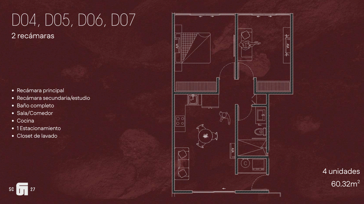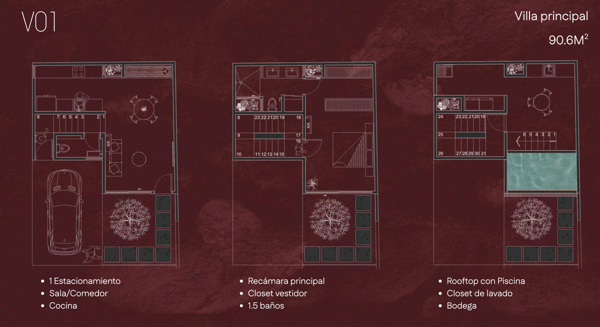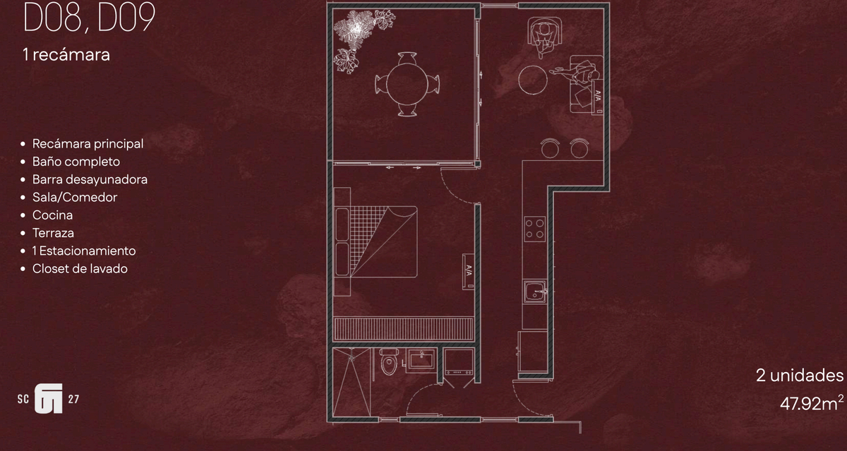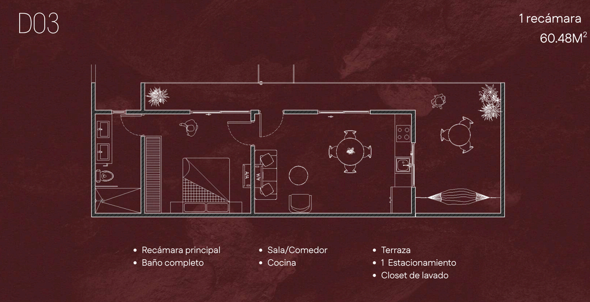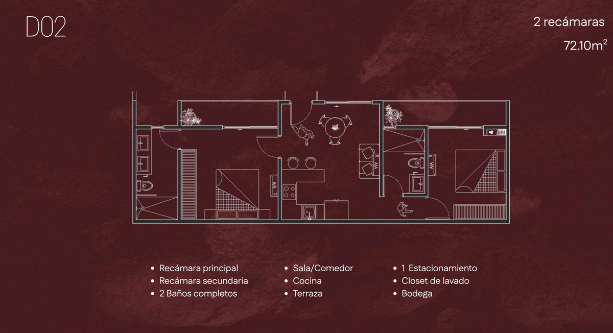 9.37m2 de bodega (opcion a terraza en lugar de bodega 1 recamara)