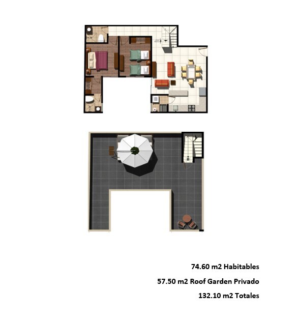 El acceso al Roof Garden privado es desde el interior del Departamento.
