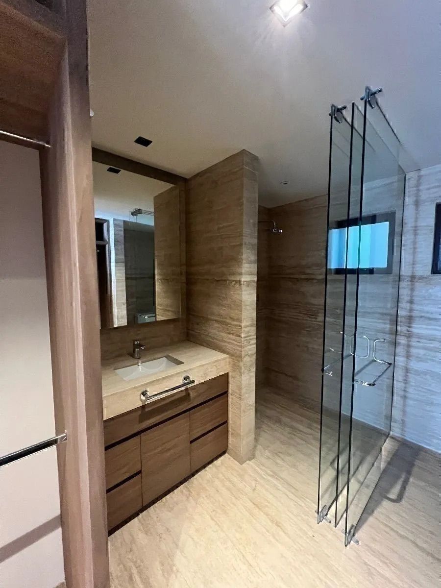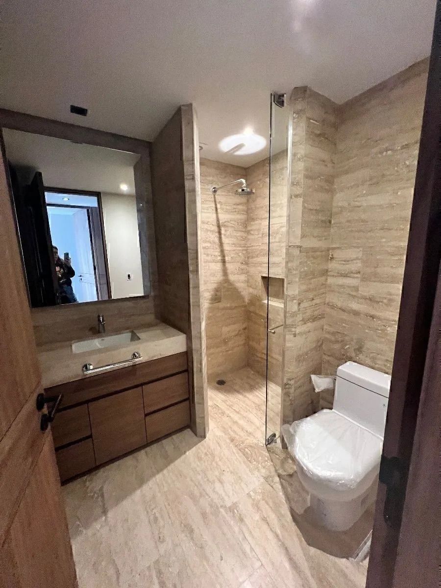 2 baños con acabados de mármol .
