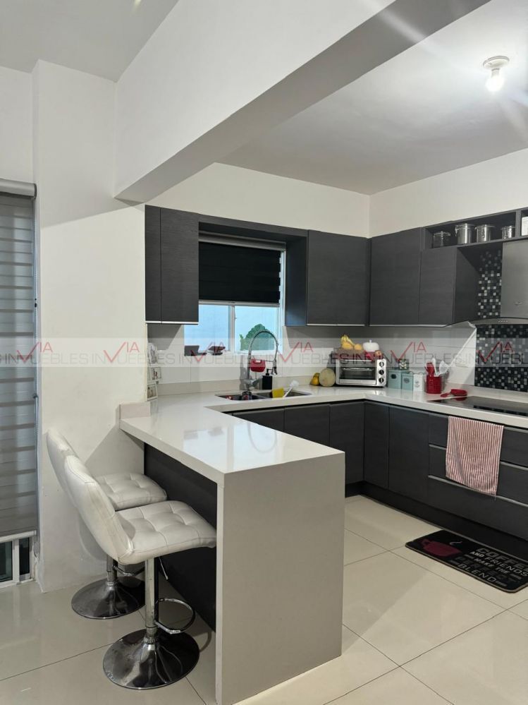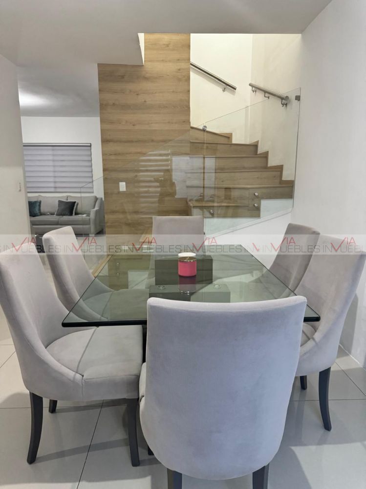 Hermosa casa 3 recámaras, 21/2 baños,2 plantas, 214 m2 de construcción, 150m2 de terreno, $22,500, cocina integral con cubierta de cuarzo, parrilla y horno, recámara principal con walking-closet y baño completo y terraza, estancia con mueble de TV, las recamaras secundarias con clóset de pared, comparten baño, baños con canceles de vidrio, 5 minisplit inverter frio/calor, persianas, chimenea con calefacción eléctrica, pasamanos de acero inoxidable, barandal de vidrio, duela escalera, bodega, lavandería, seguridad 24/7, parque, casa club con salón y terraza, alberca, cancha de fútbol , excelente ubicación.