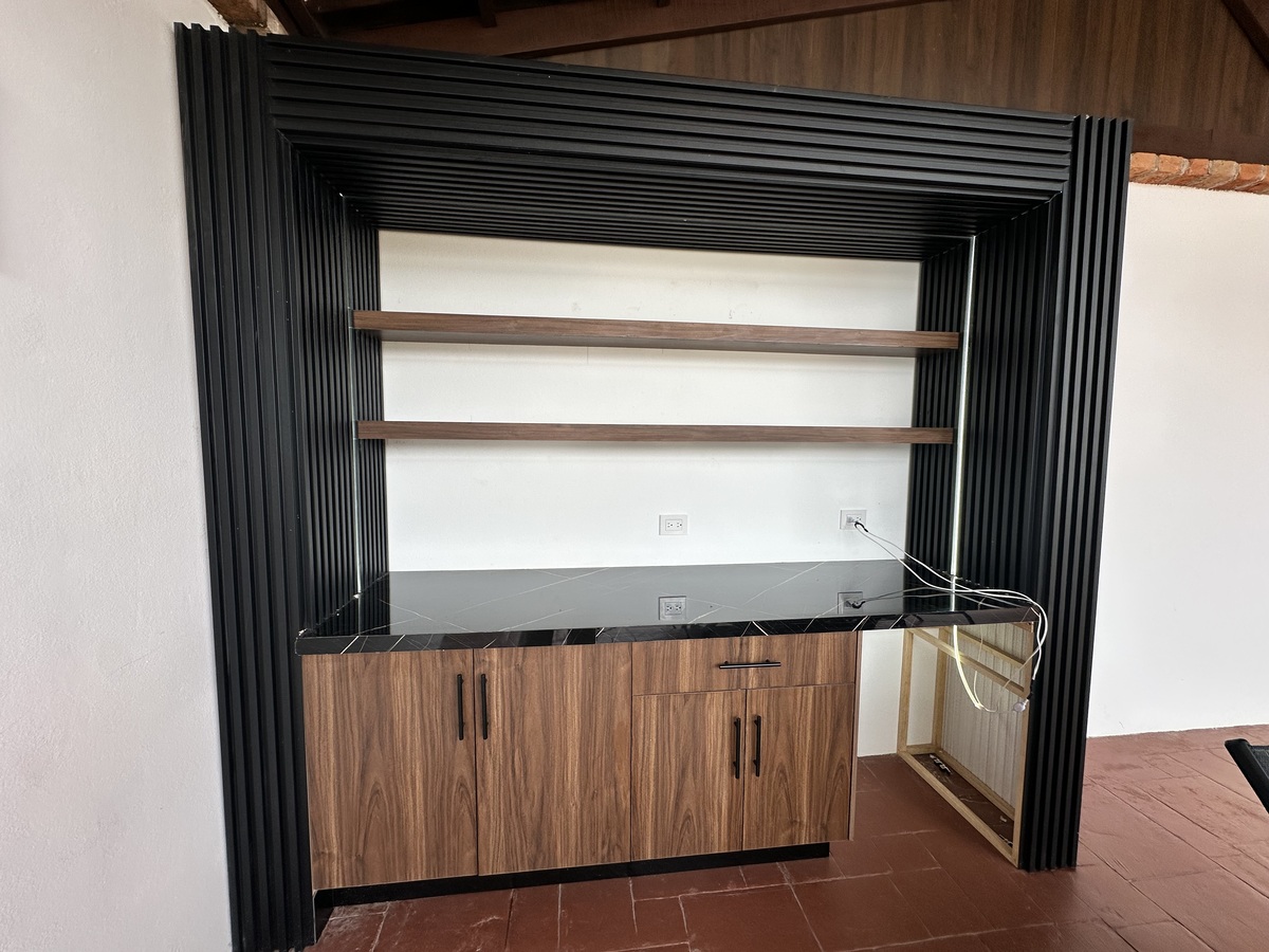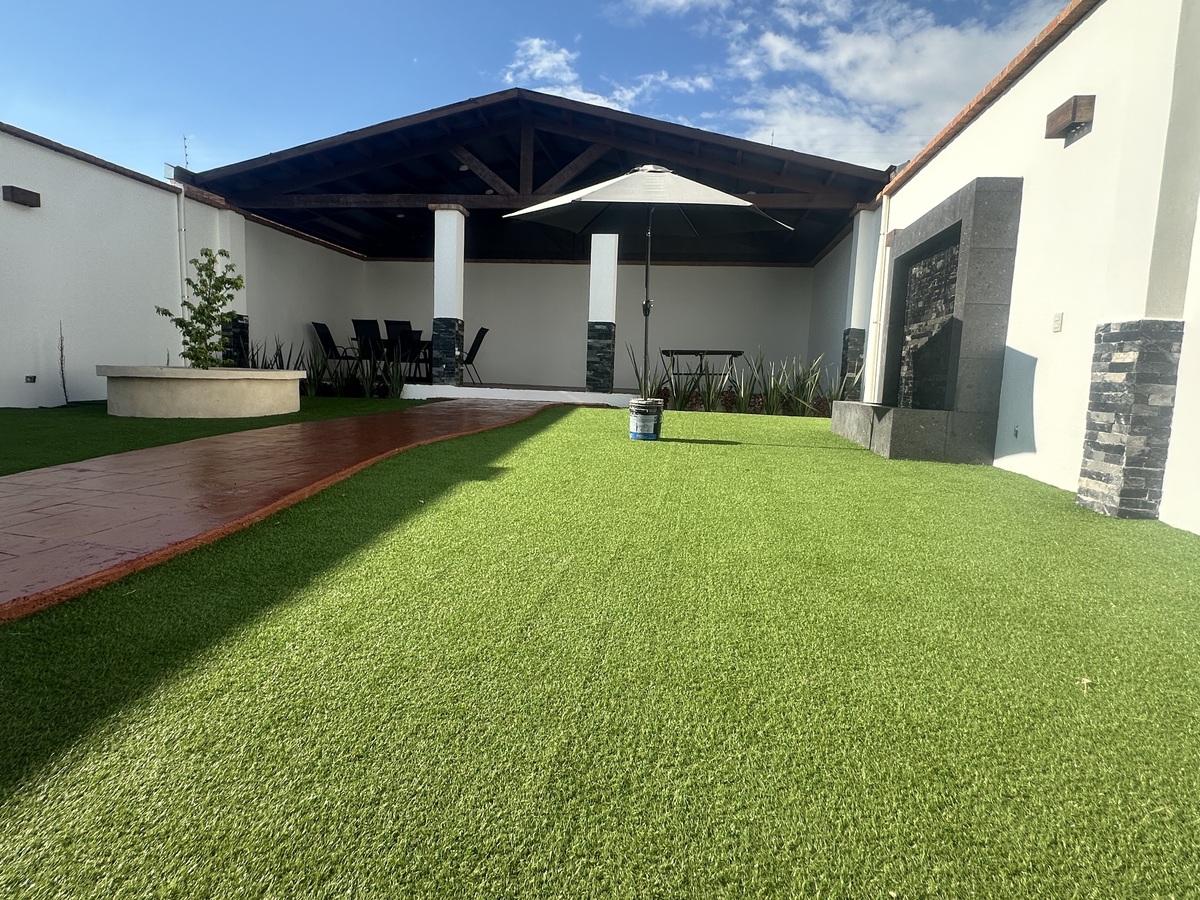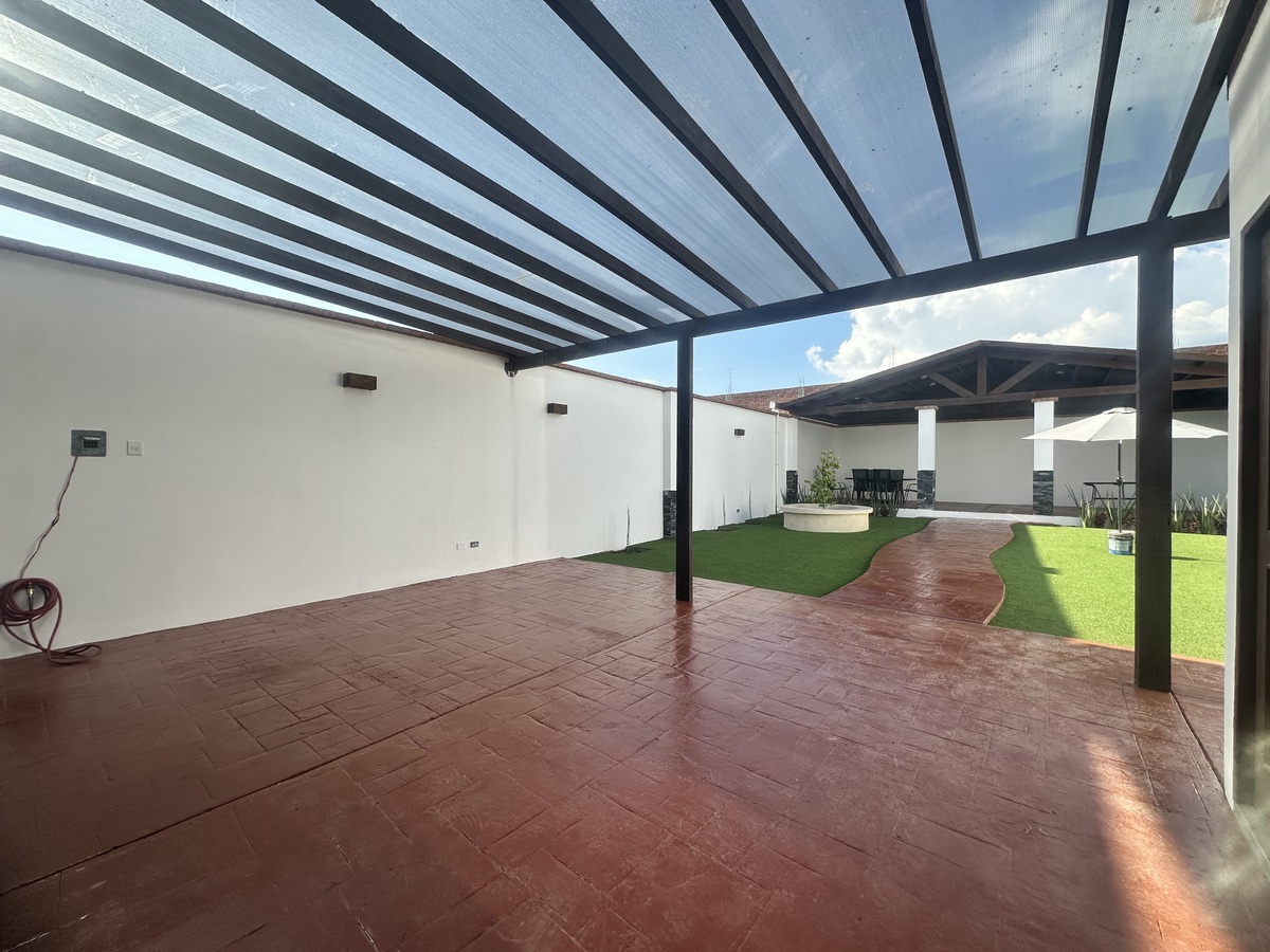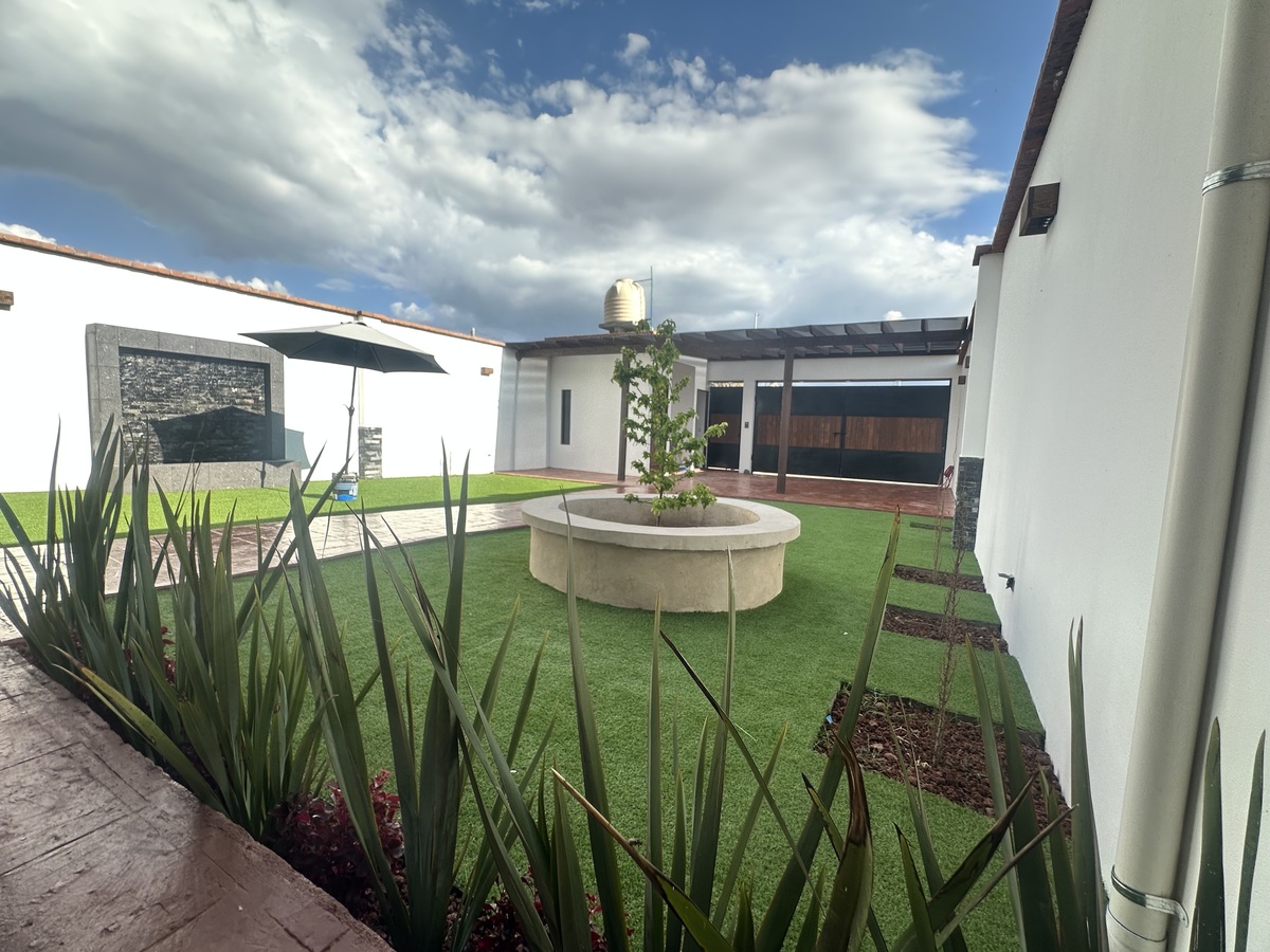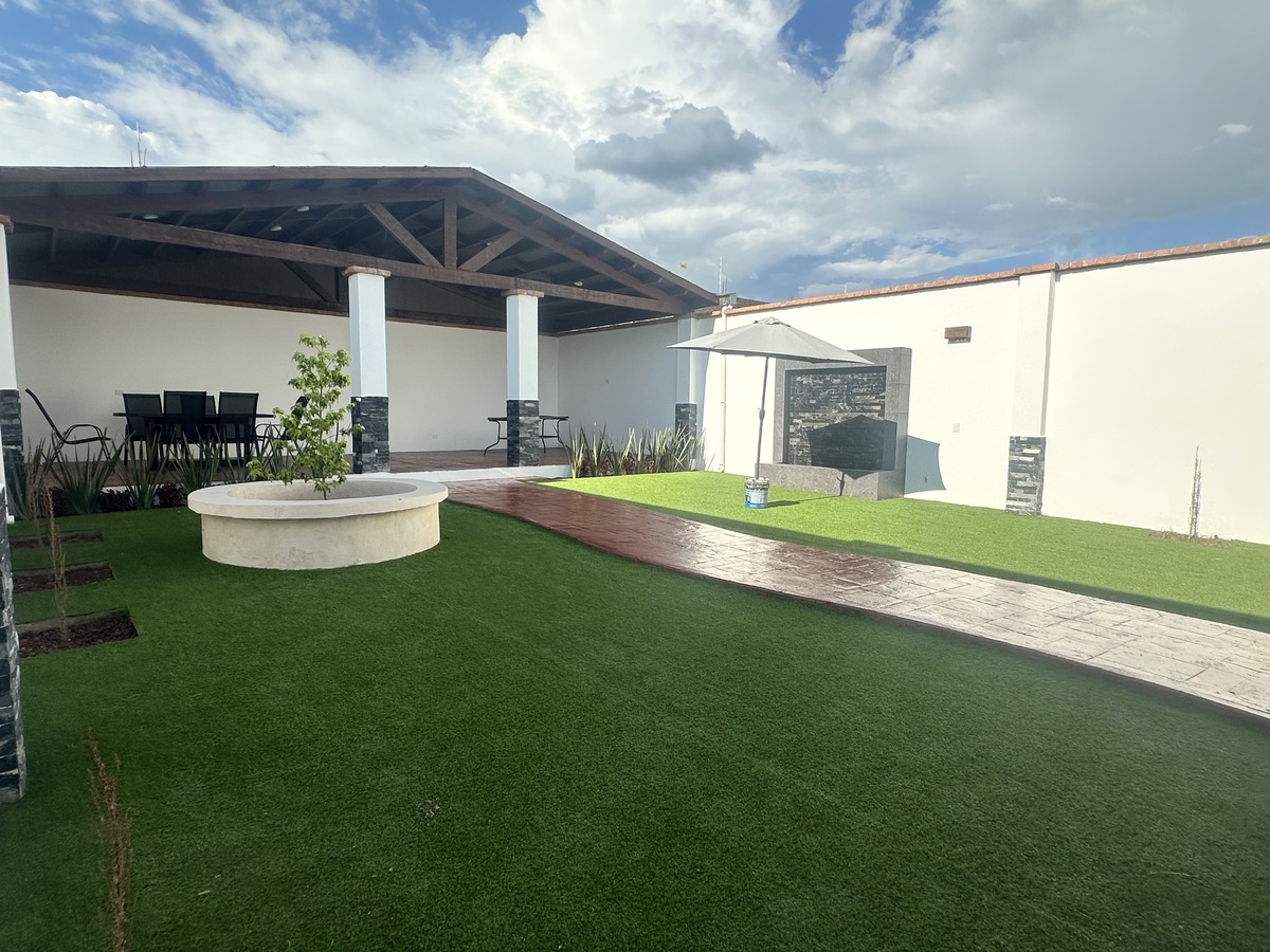 Está Quinta cuenta con baño para damas y caballeros, tejaban, jardín, muro llorón, palapa con candil, barra con cubierta de granito, sala lounge con mesa tipo fogatero, incluye TV de 80”.