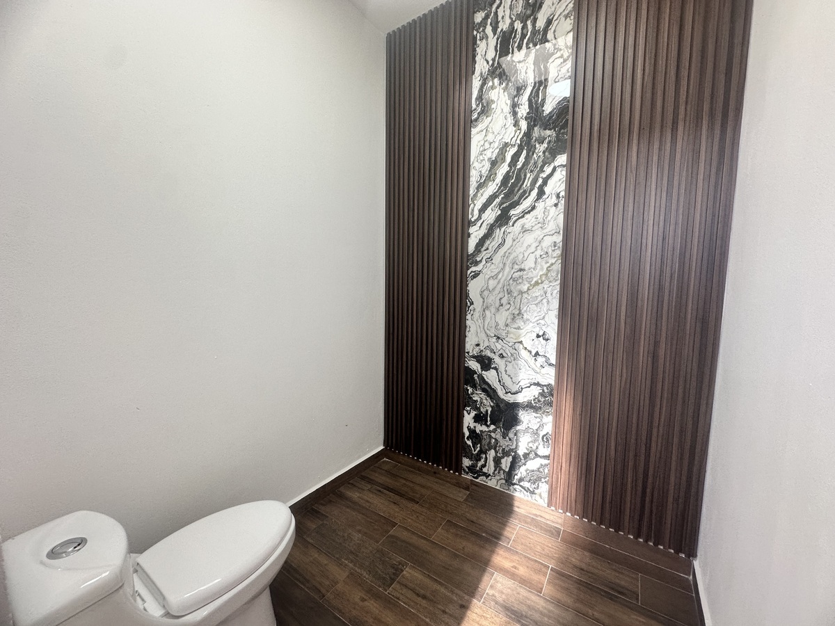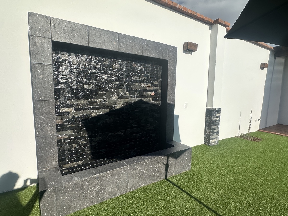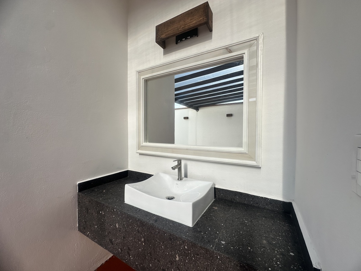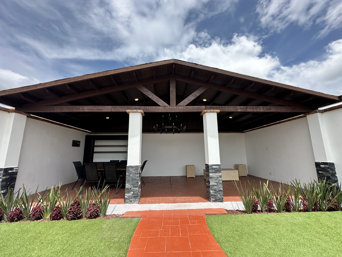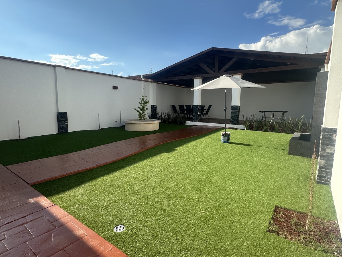 Está Quinta cuenta con baño para damas y caballeros, tejaban, jardín, muro llorón, palapa con candil, barra con cubierta de granito, sala lounge con mesa tipo fogatero, incluye TV de 80”.