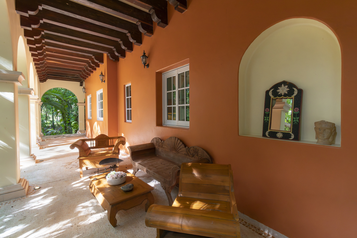 El diseño integra elementos naturales como orquídeas, palma chit, guano y maderas nobles como zapote, chechén y cataloch, creando un ambiente auténtico y sofisticado. En el exterior destacan la alberca rodeada de paisajismo natural con bar y terraza, una palapa para eventos de hasta cuarenta personas, asador uruguayo, horno de pizzas, oficina independiente con baño completo, casita para el personal de servicio, estacionamiento y jardines con caminos naturales.