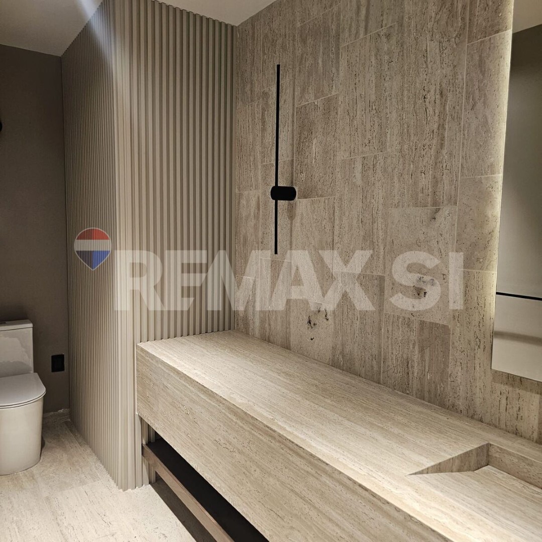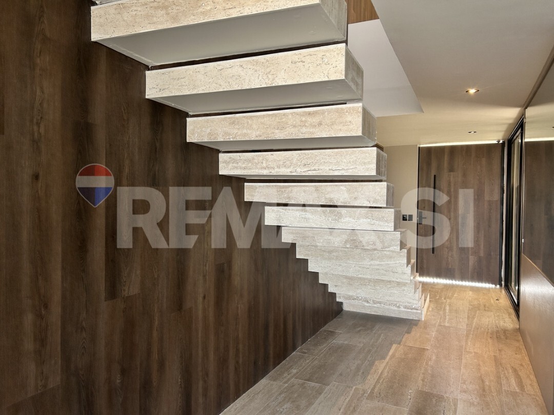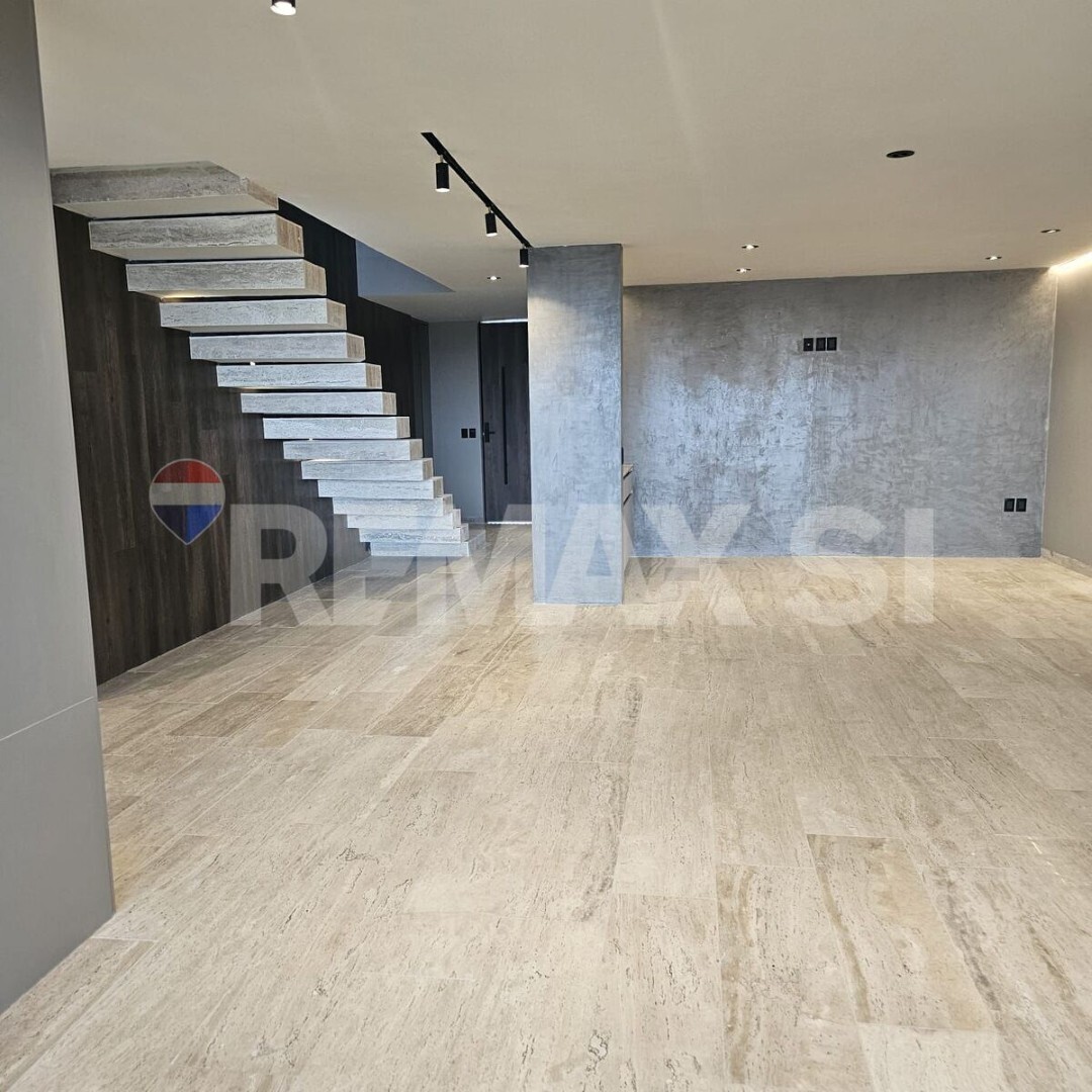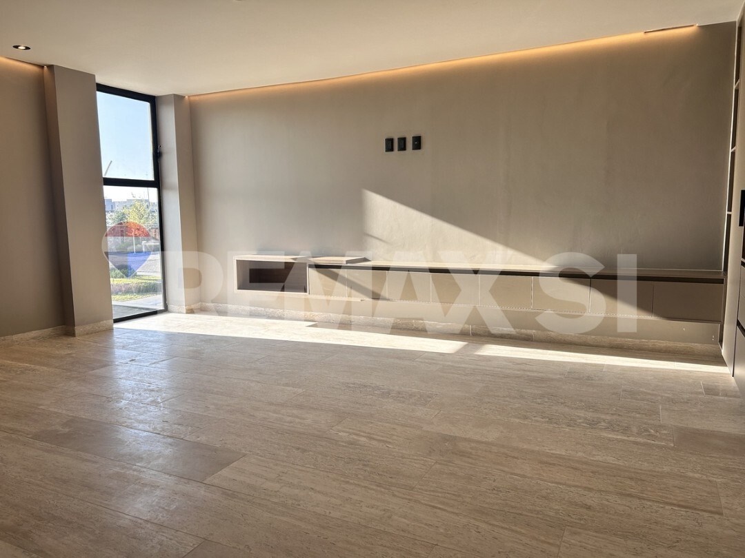 Amplia estancia con pisos de mármol e iluminación moderna, decorativa y estudio.