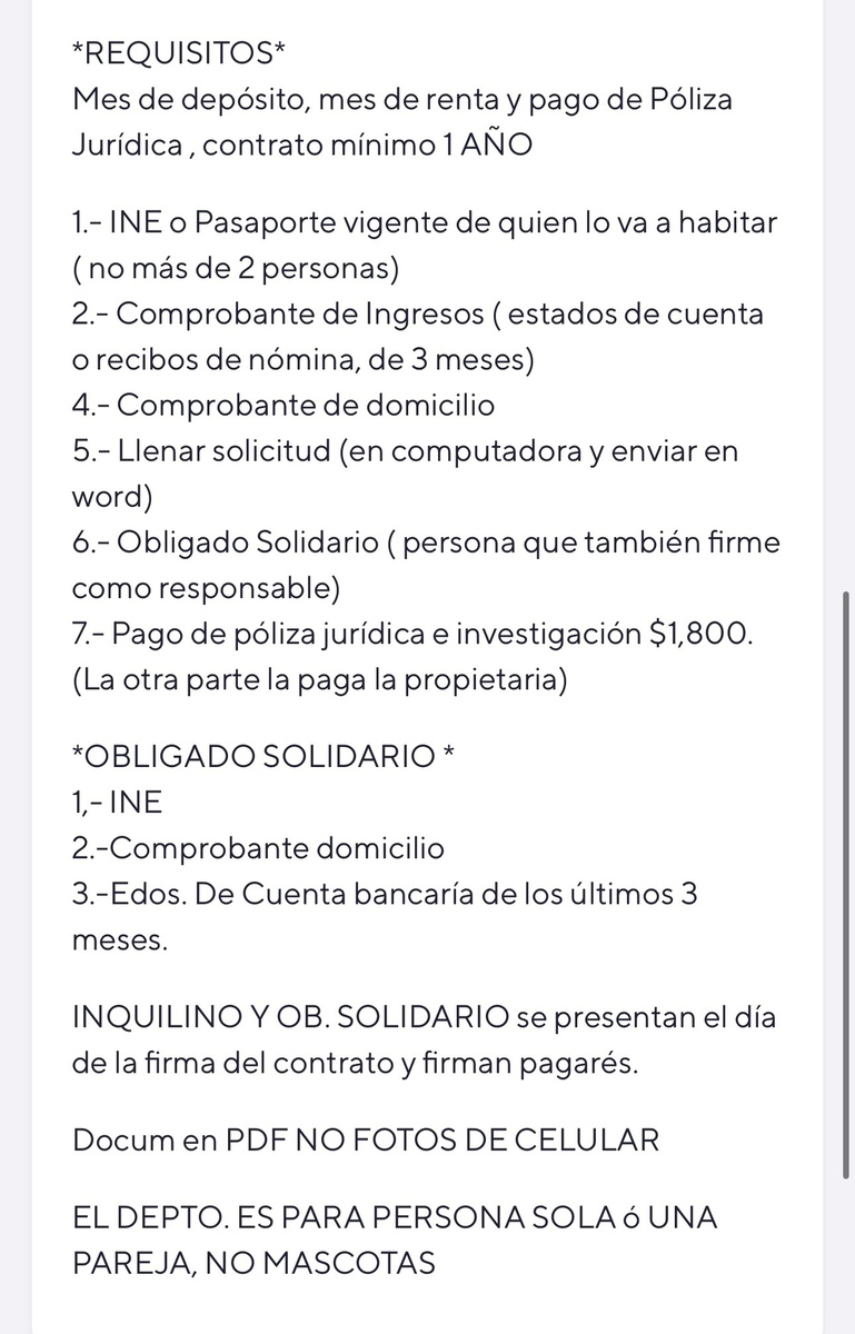 RENTA. Depto. de 32 m2 ideal para personas solas o parejas, en 1er.piso, El depto cuenta con 1 recamara, estancia, baño completo dentro de la recamara, cocina con estufa y barra desayunador, jaula de tendido en azotea, edificio de solo 2 niveles, sobre Av. Municipio Libre, DISPONIBLE PARA CITAS X WHATSAPP al 554388-2866 . Gas Natural. Condominio horizontal muy tranquilo. NO MASCOTAS (no insista) , NO CUENTA CON ESTACIONAMIENTO. PRECIO INCLUYE MANTENIMIENTO. Se encuentra cerca del metro Portales, a una cuadra de Tlalpan. Esquina con calle Miraflores. DISPONIBLE PARA CONOCER EL 15 nov 2025
