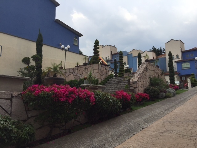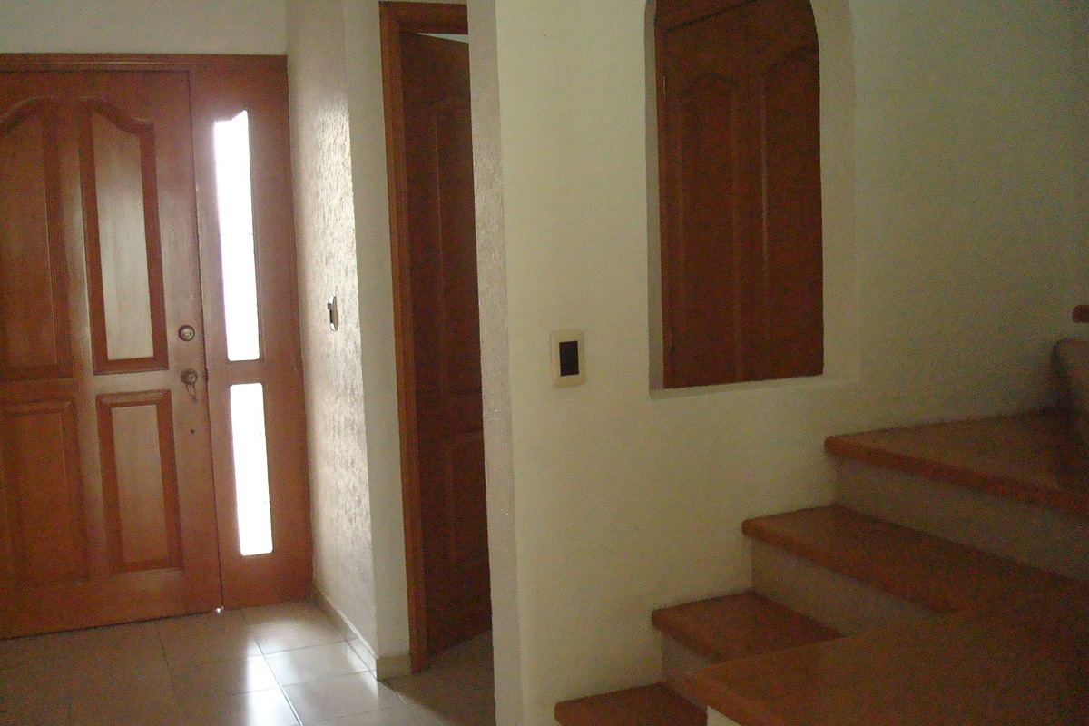 HACIENDA VISTA REAL Casa en Condominio con agradables áreas comunes. Proyecto en 3 niveles en dos aguas, 3 amplias recamaras, la principal en el tercer nivel con con baño propio tina y amplio closet. Dos amplias recamaras comparten baño y sala de TV y en la PB Sala estancia con acceso agradable jardín, cocina equipada y medio baño. 2 lugares de estacionamiento y de visitas dentro del desarrollo. Cuarto de servicio con medio baño y área de lavado integrado y con entrada independiente Calles adoquinadas y cableado subterráneo. Mantenimiento $ 1,800.00