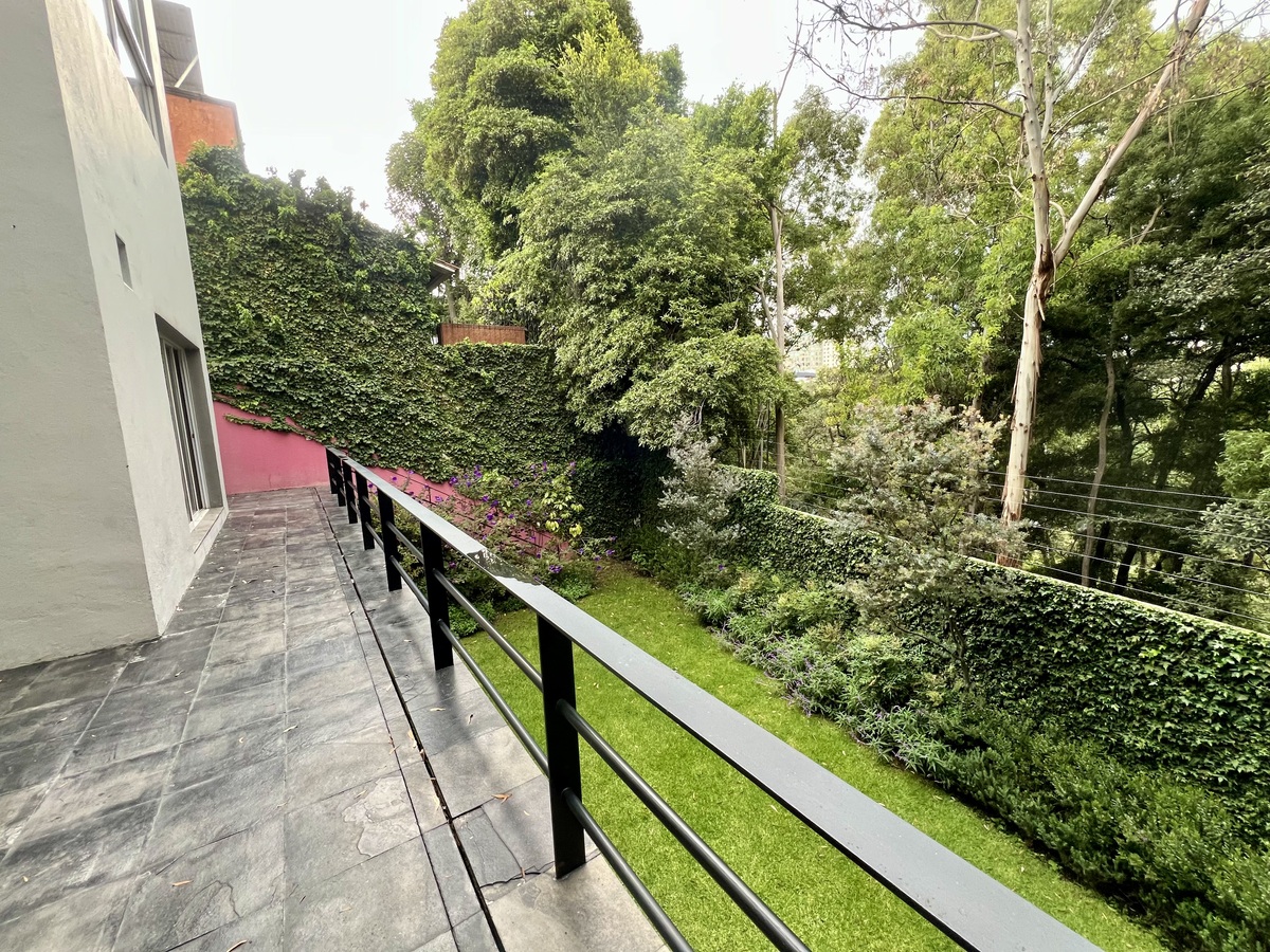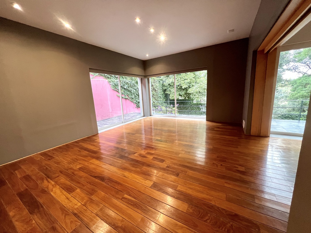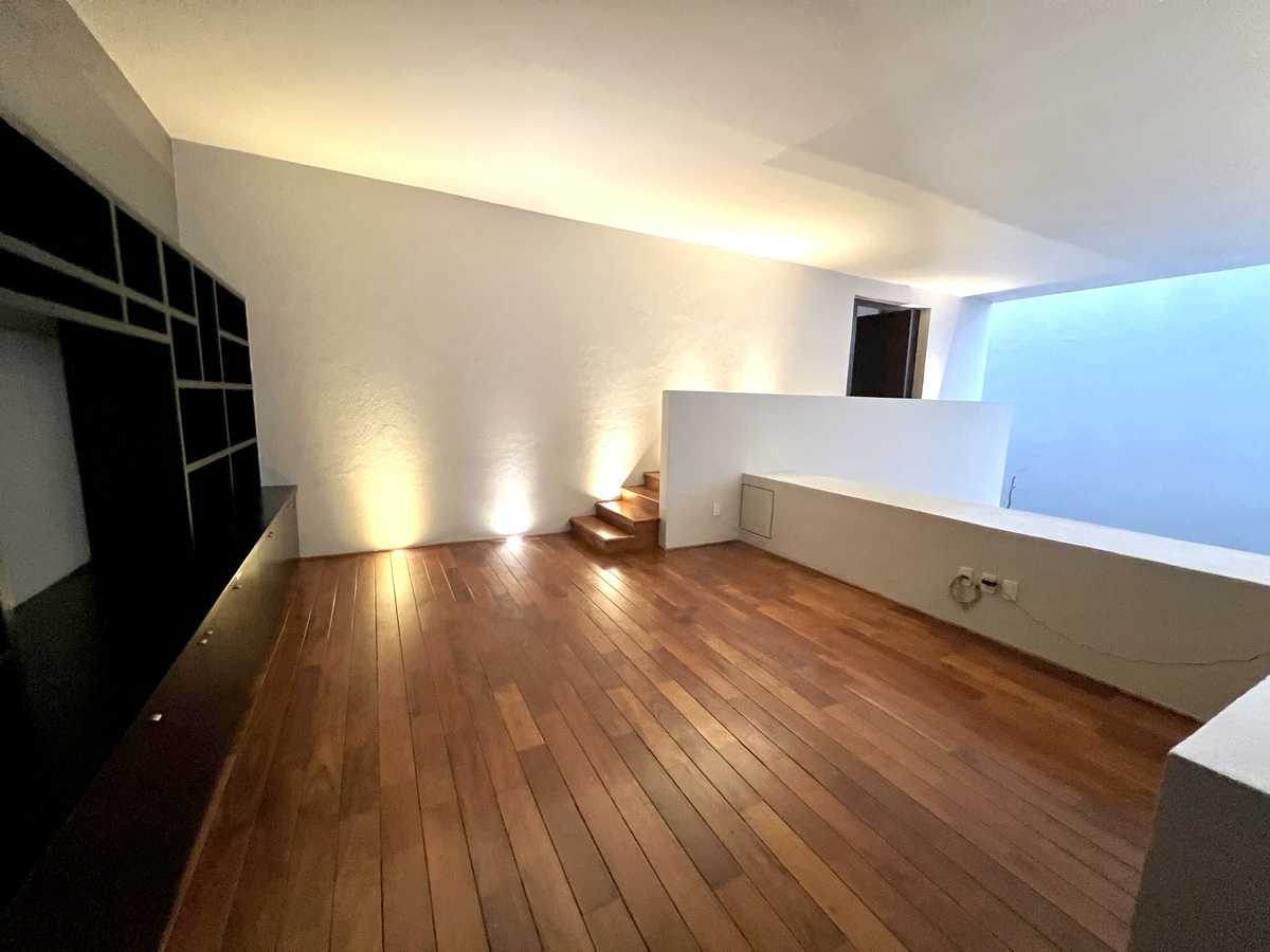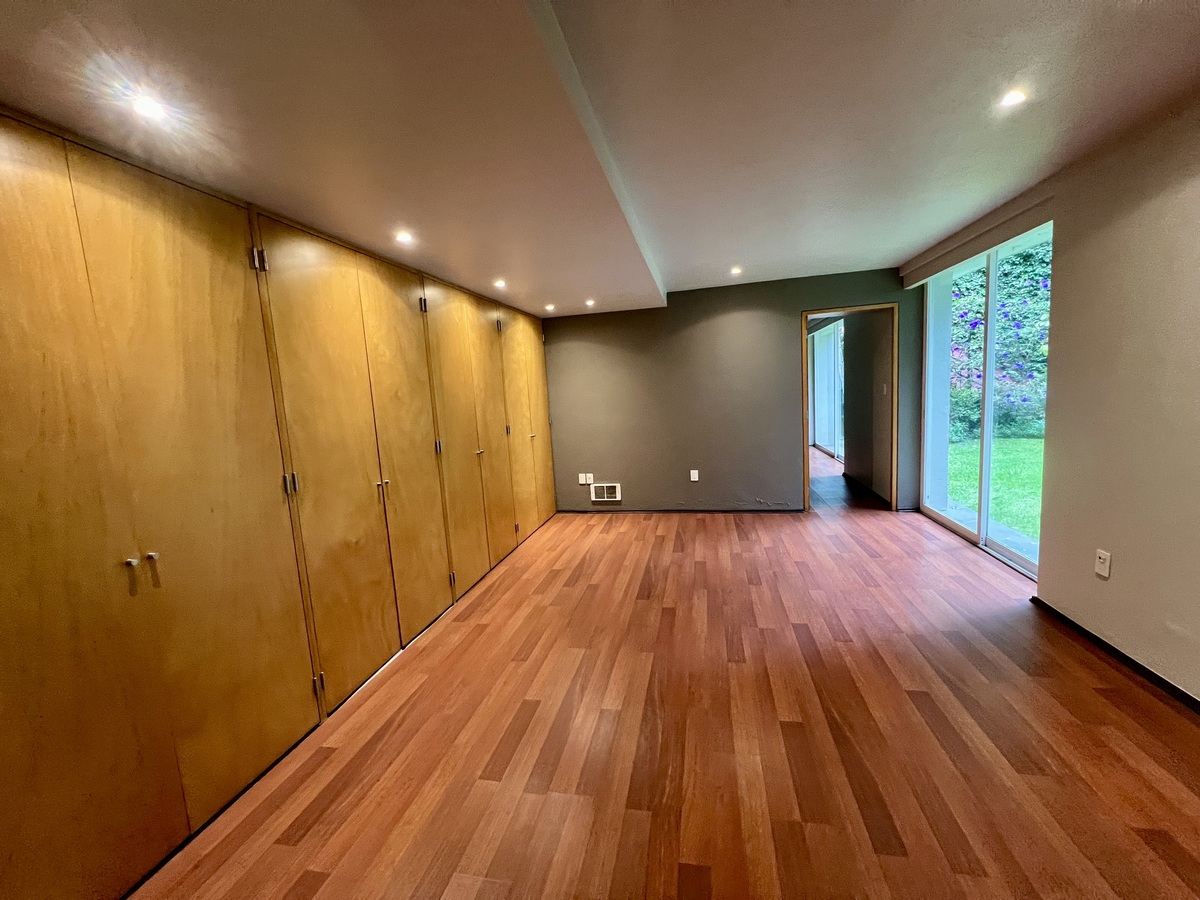 Una de las recámaras se encuentra un nivel abajo del área social junto al jardín.