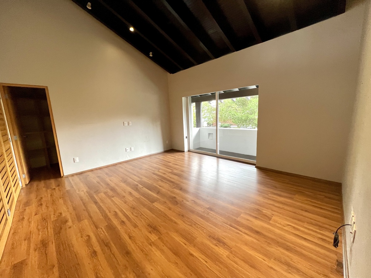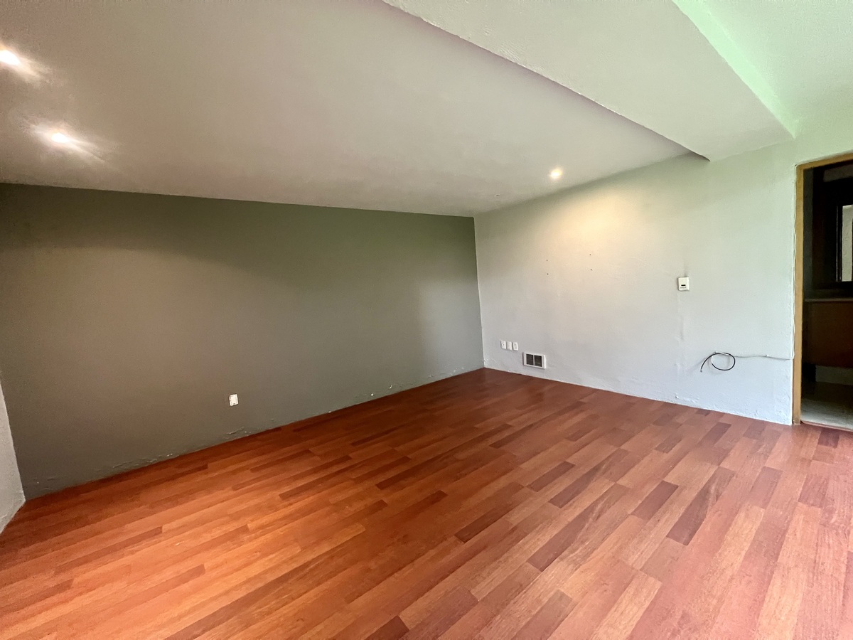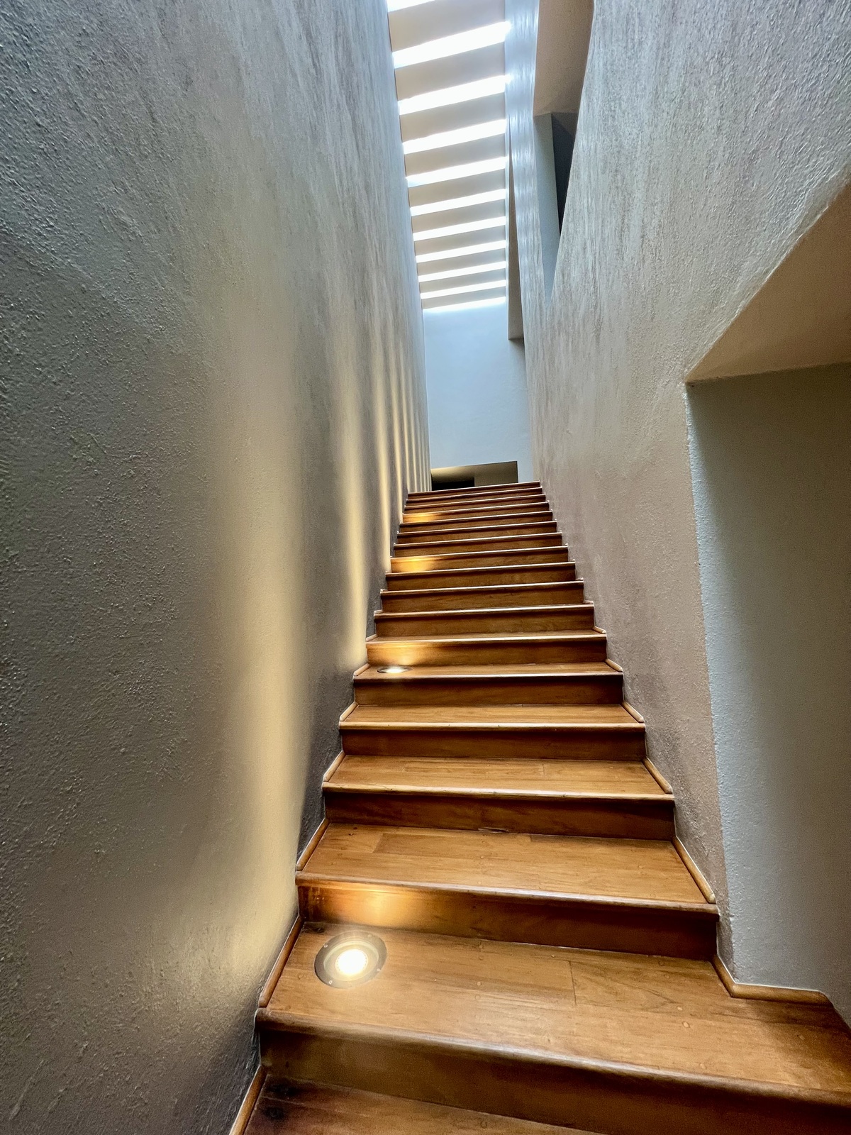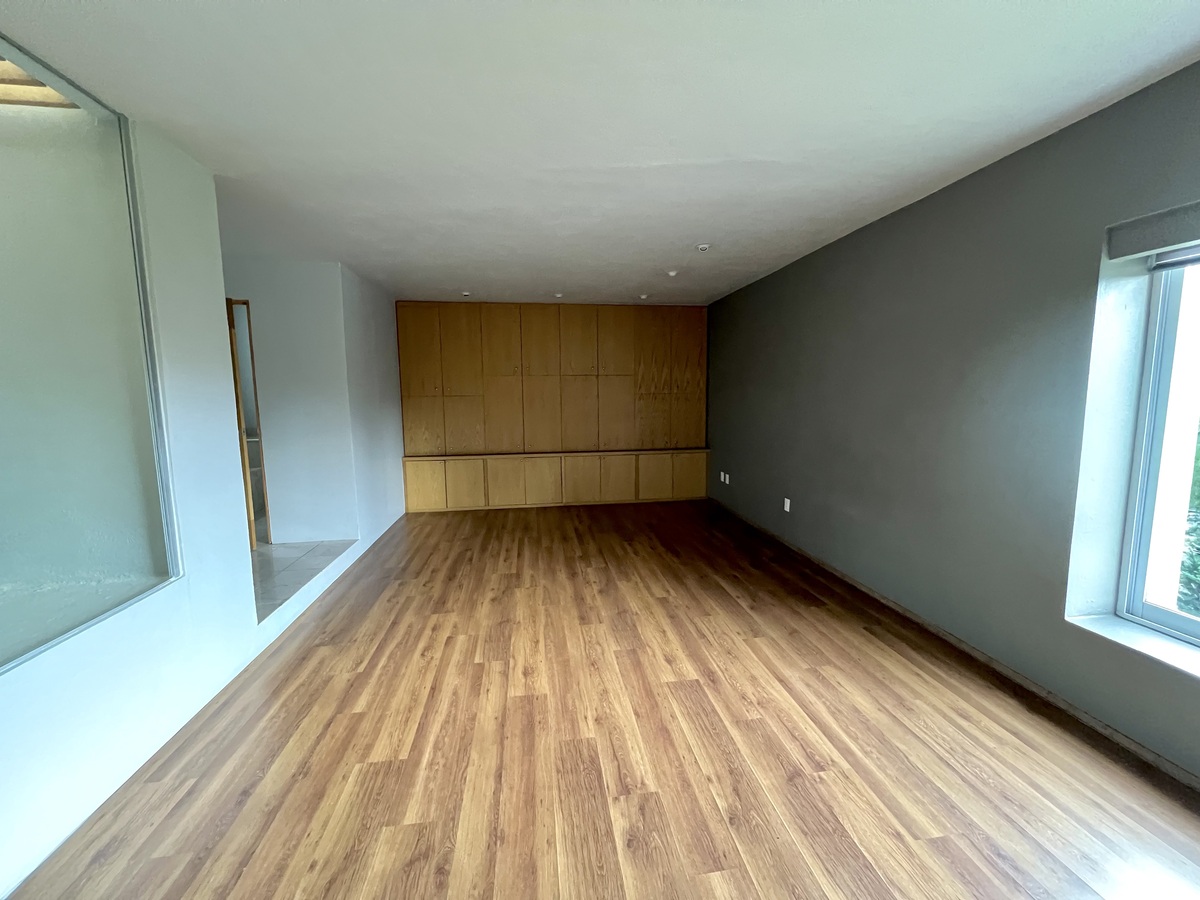 Una de las recámaras se encuentra un nivel abajo del área social junto al jardín.