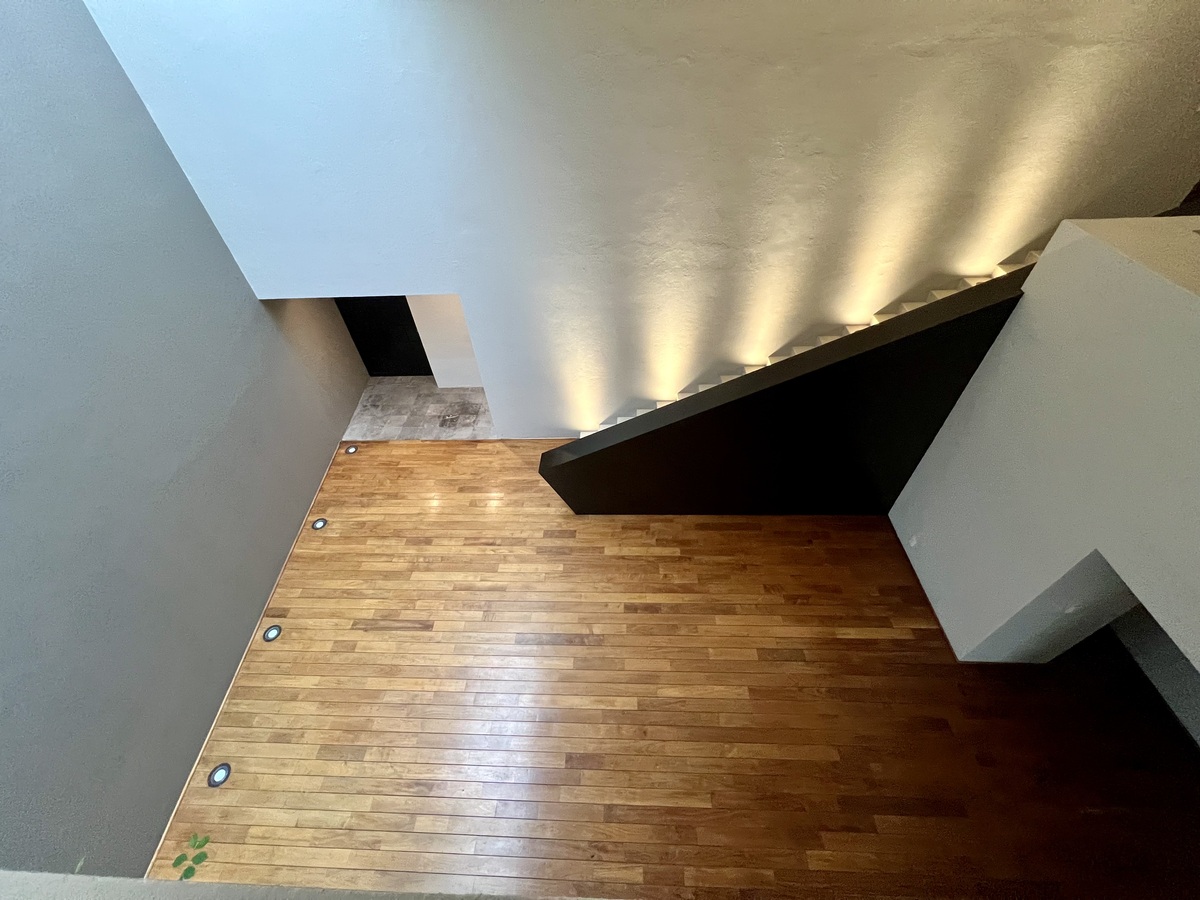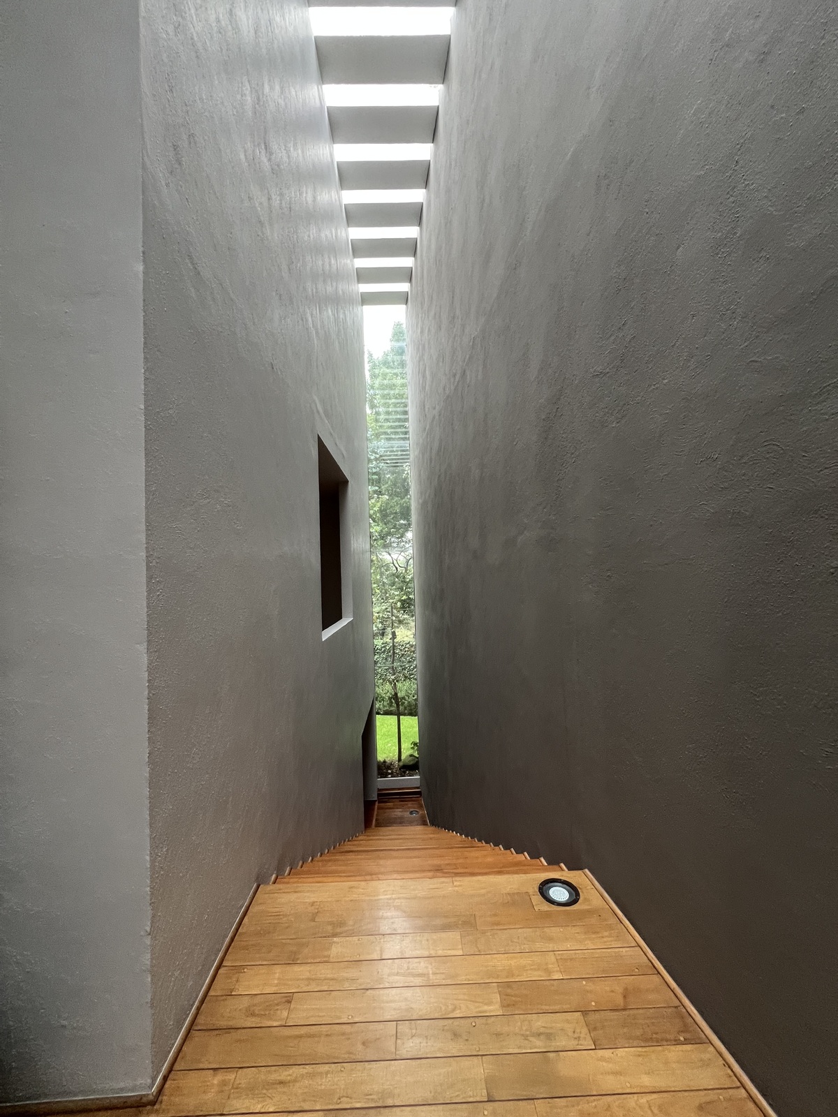 Nos recibe un imponente recibidor a doble altura con un tragaluz que ilumina buena parte de la casa.