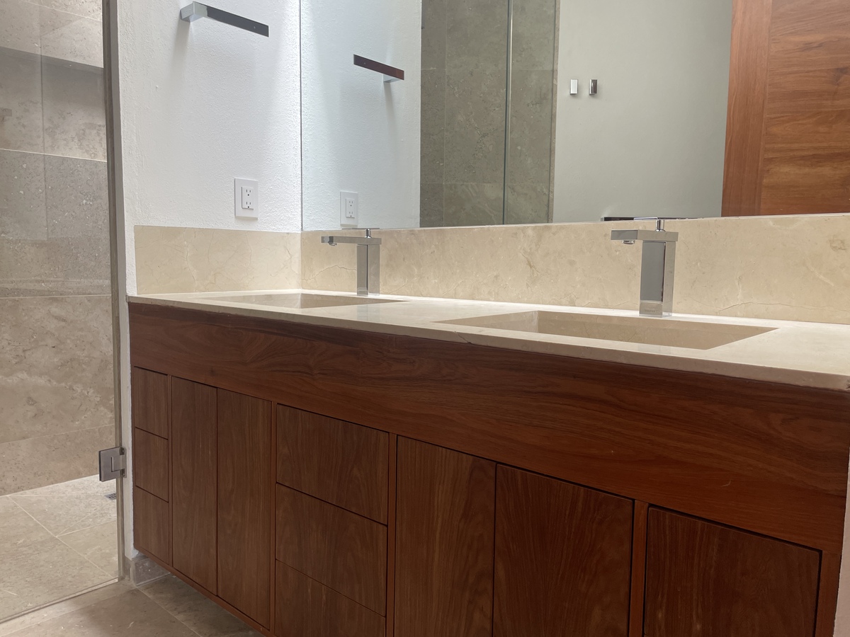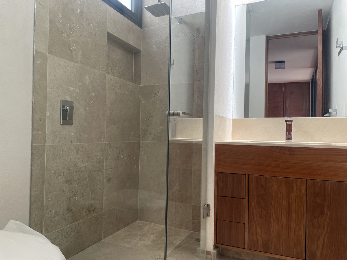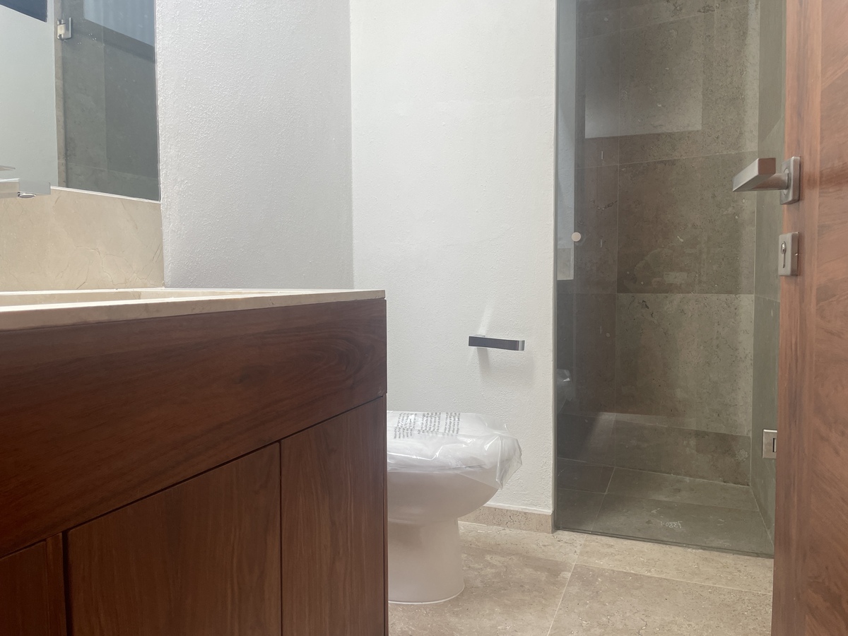 Estrene amplia casa en Exclusivo Condominio Santa Inés con acabados premium en excelente ubicación. Vestíbulo de acceso, Sala comedor abierto, jardin pequeño y jacuzzi. Cocina con cubierta de Corian con Refrigerador / Congelador Integrado. Estudio en PB y baño completo. Pasillo con acceso desde el estacionamiento al área de servicio con Cuarto de Servicio con baño, patio, cuarto de lavado cerrado y bodega. Subiendo las escaleras 3 recamaras cada una con su baño y closet, la principal con gran vestidor. Area de TV y closet de blancos. Posibilidad de usar el Estudio en PB como cuarta recamara. Celosias de Madera de Tzalam y en pisos y closets, pisos y baños de mármol, preparación para instalar mini splits, Cristales Templados en regaderas y regaderas de lluvia. Se pondrán persianas. El condominio cuenta con Vigilancia 24/7, alberca, Canchas de Padel, terraza de eventos, juegos infantiles y estacionamiento de visitas
