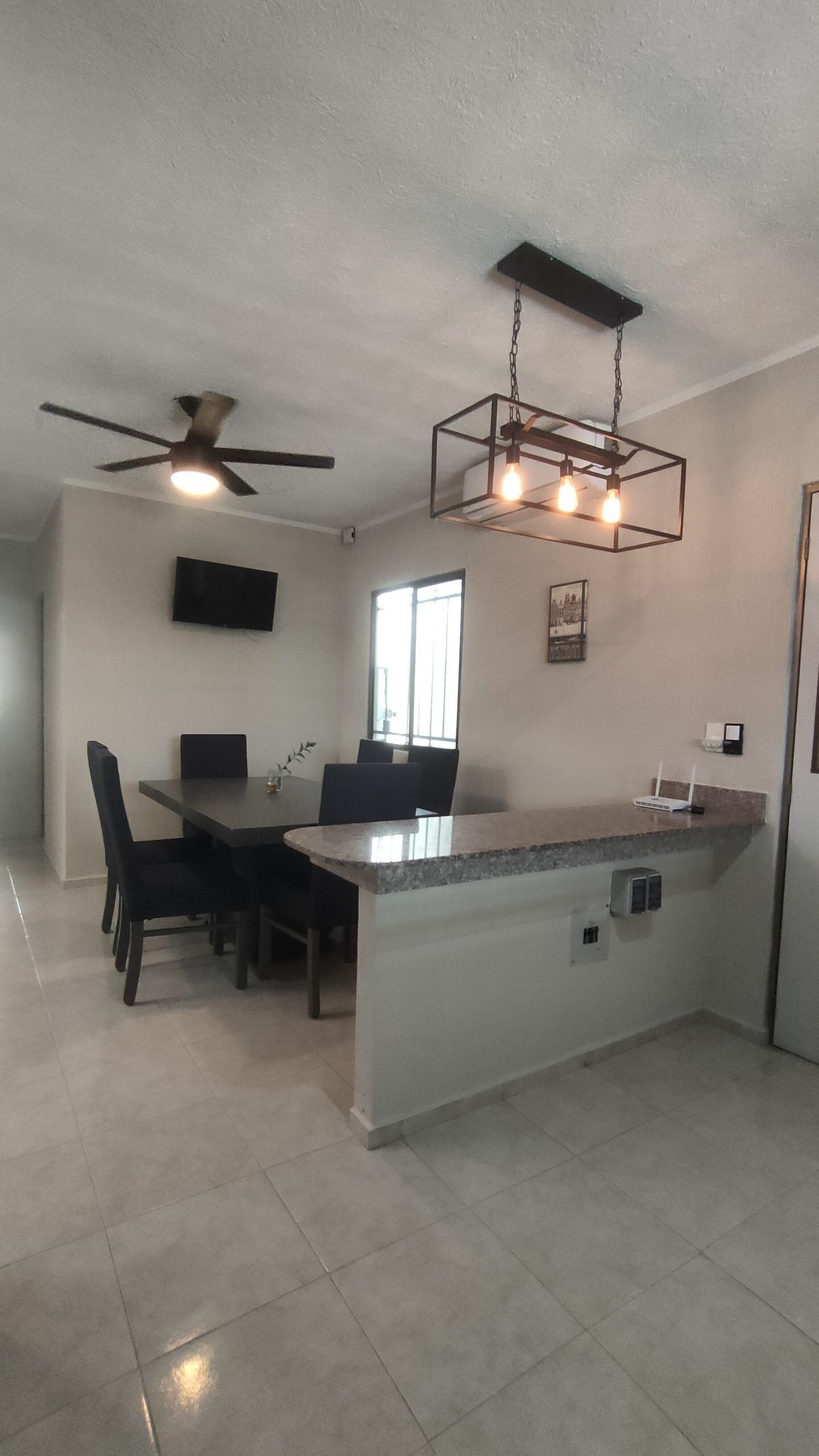 Cocina equipada con barra desayunador.