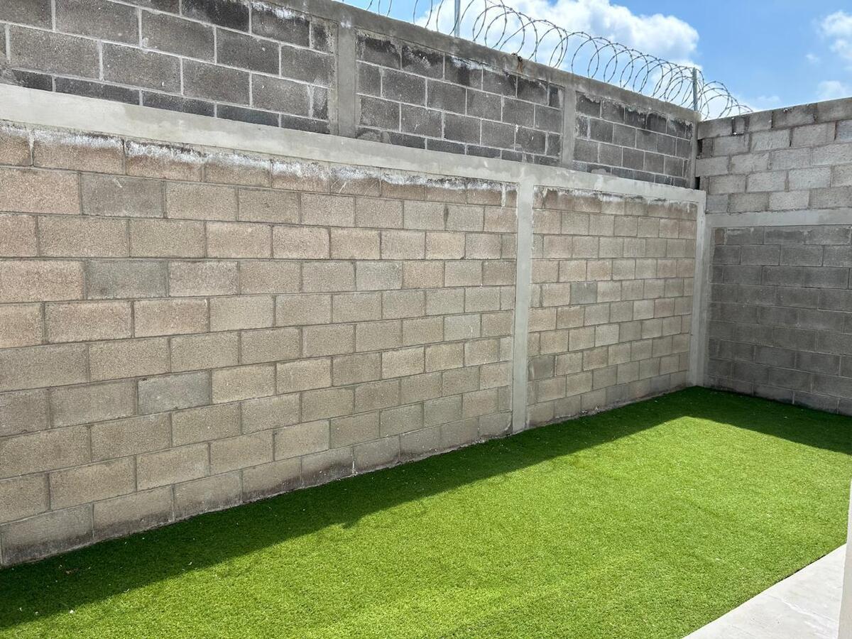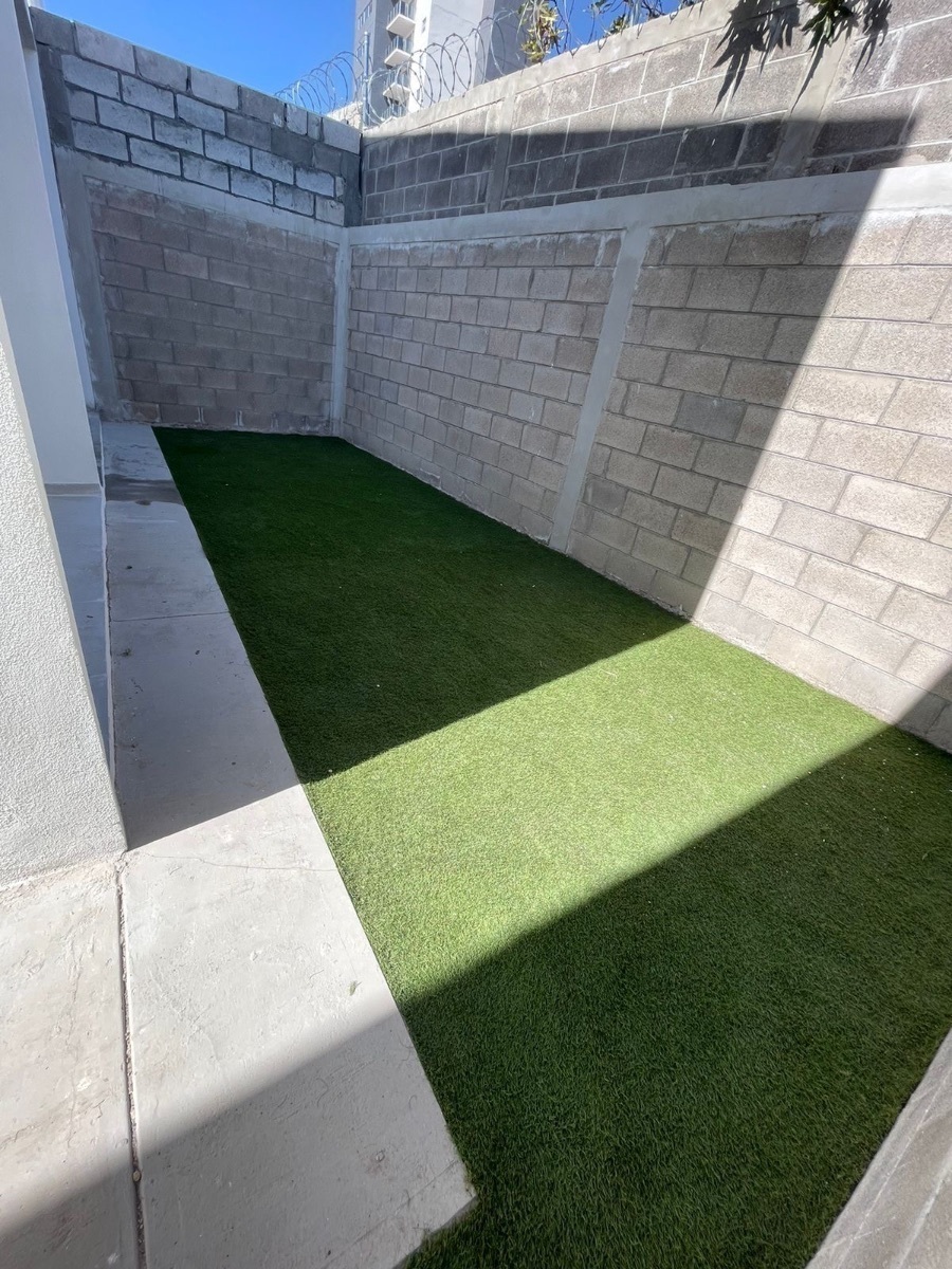 Patio posterior con pasto sintético,