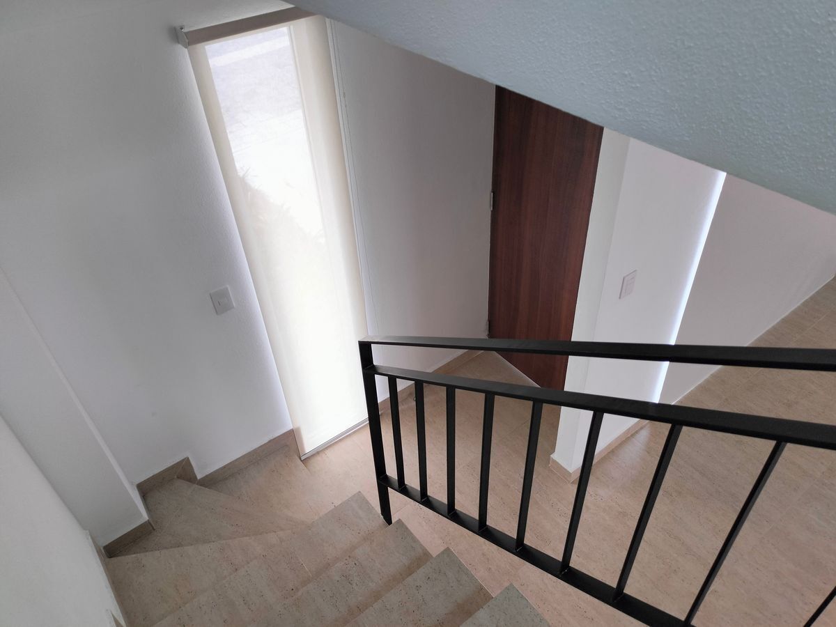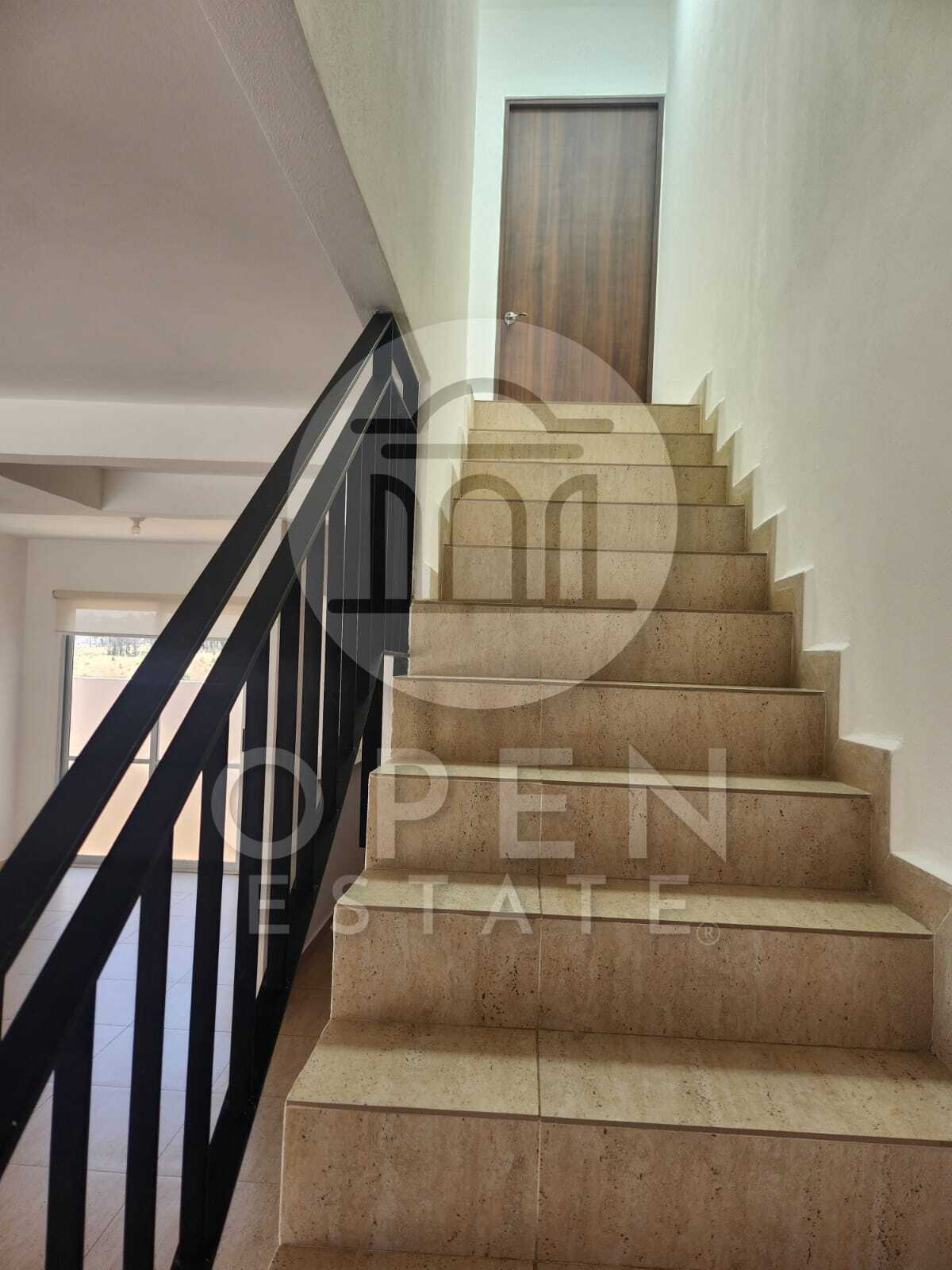 En la planta alta, se encuentran tres habitaciones, un baño para las recámaras secundarias, y la recámara principal que cuenta con su propio baño, balcón y closets. Además, se menciona la presencia de persianas en la casa.