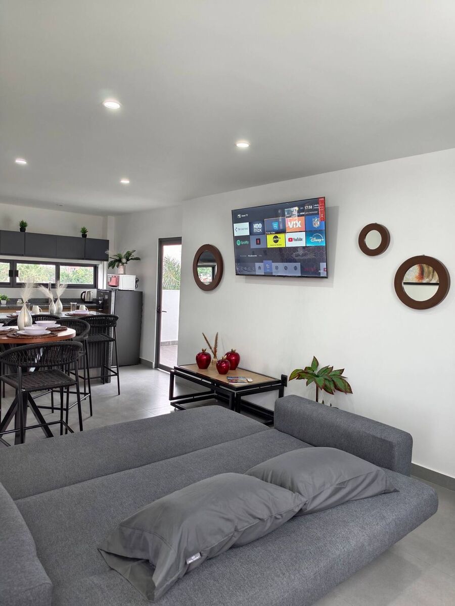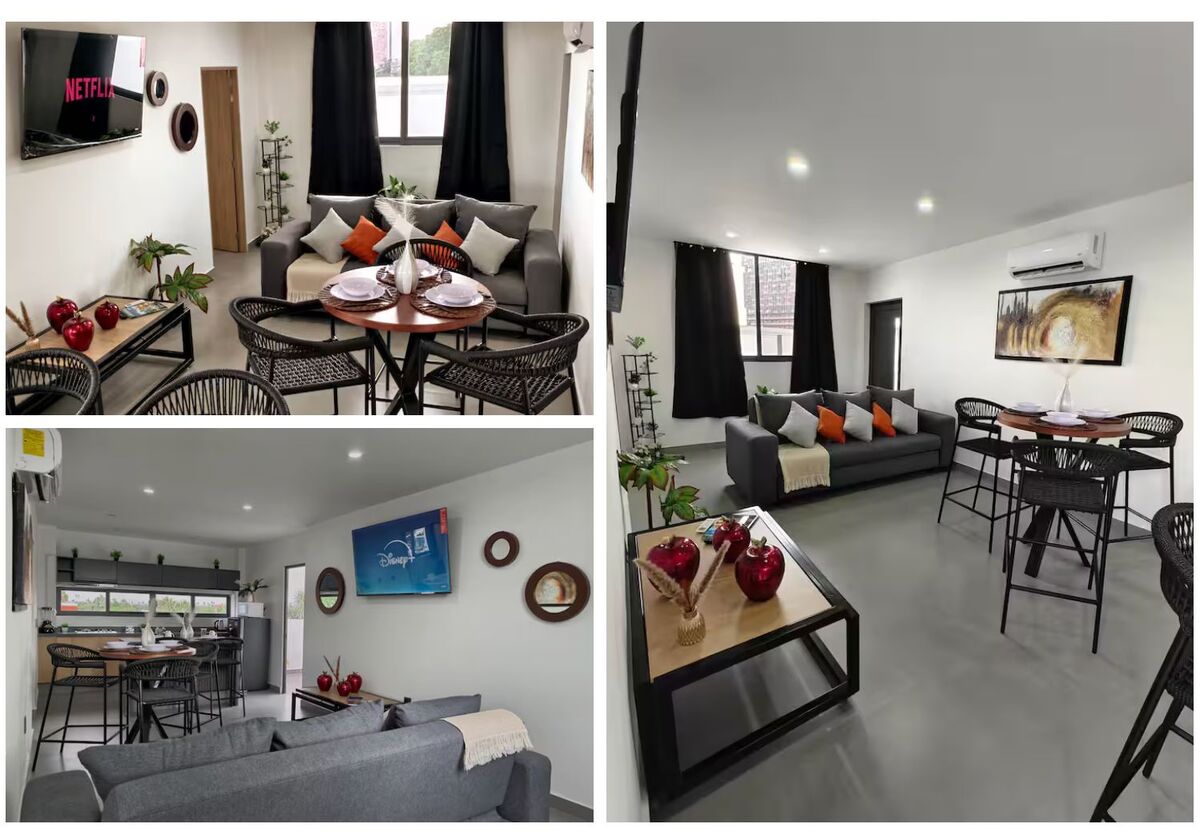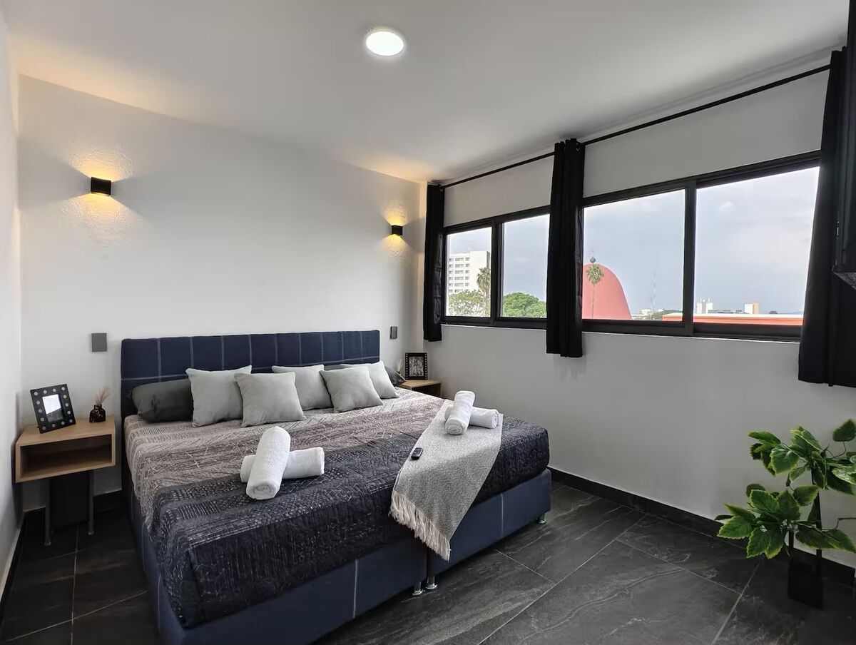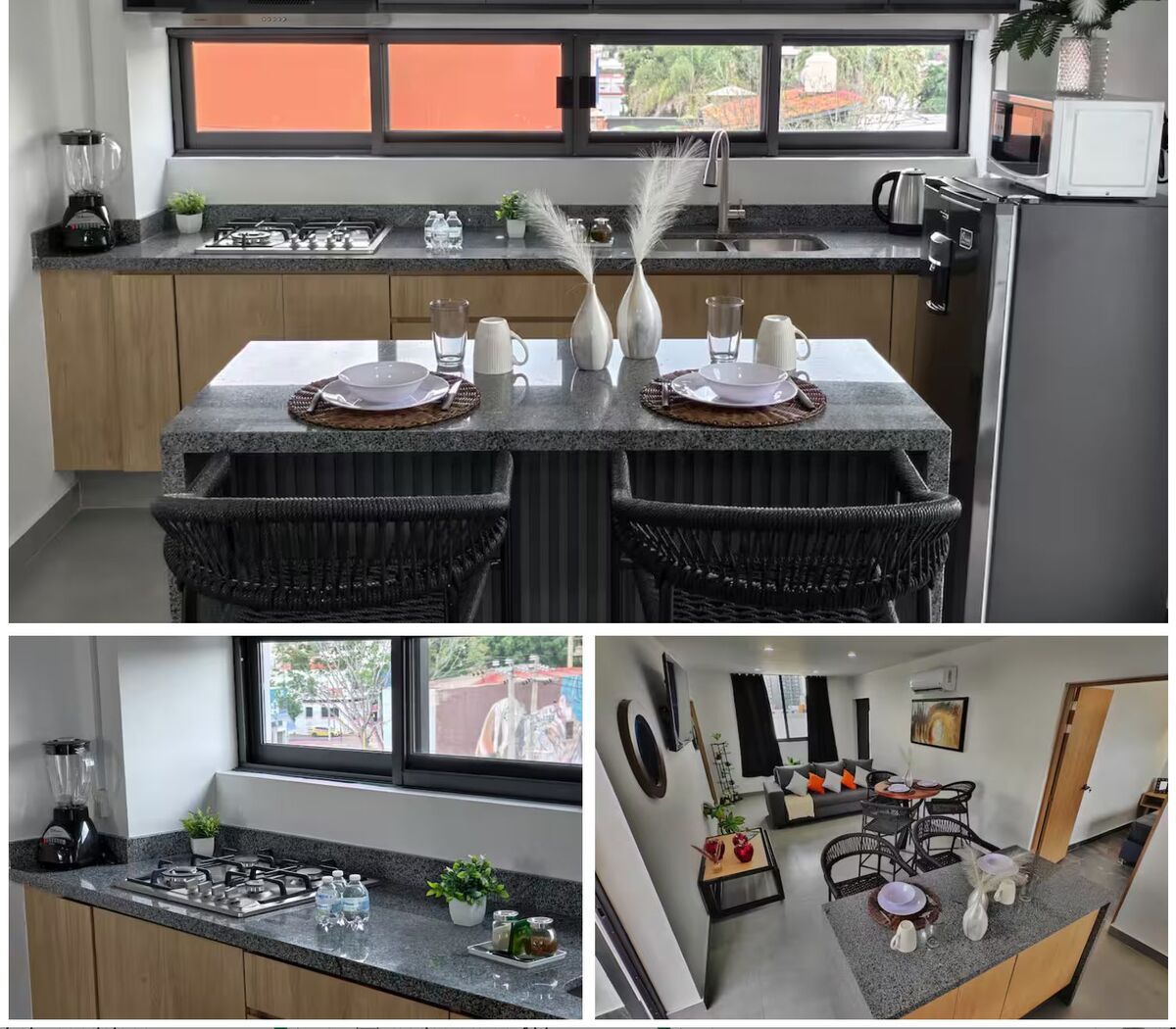 Este moderno y amplio departamento cuenta con 3 habitaciones con camas King Size, sala acogedora, comedor y cocina totalmente equipada.