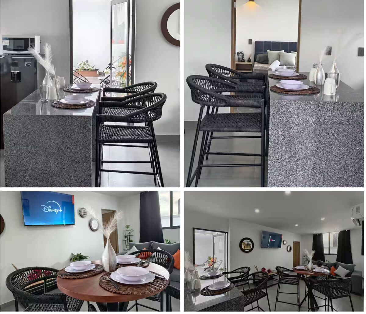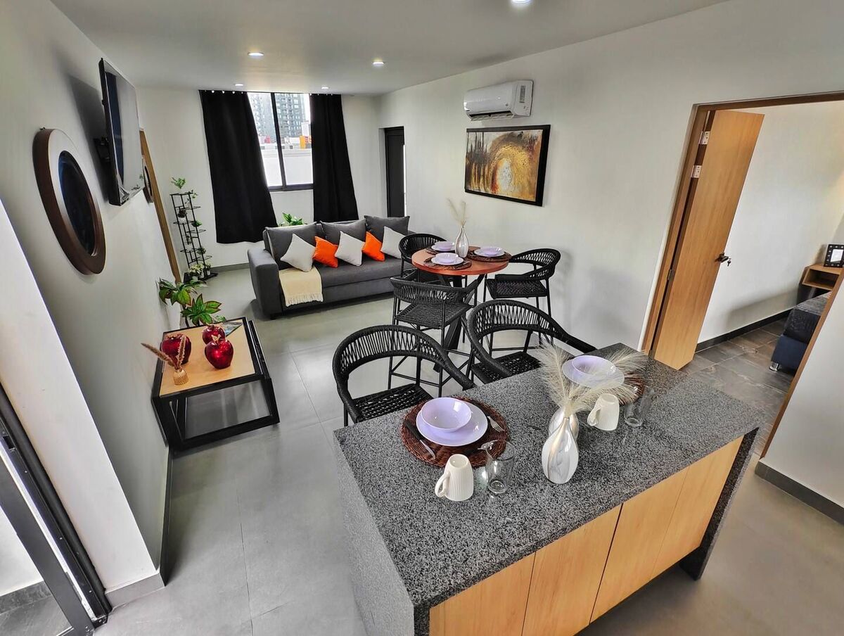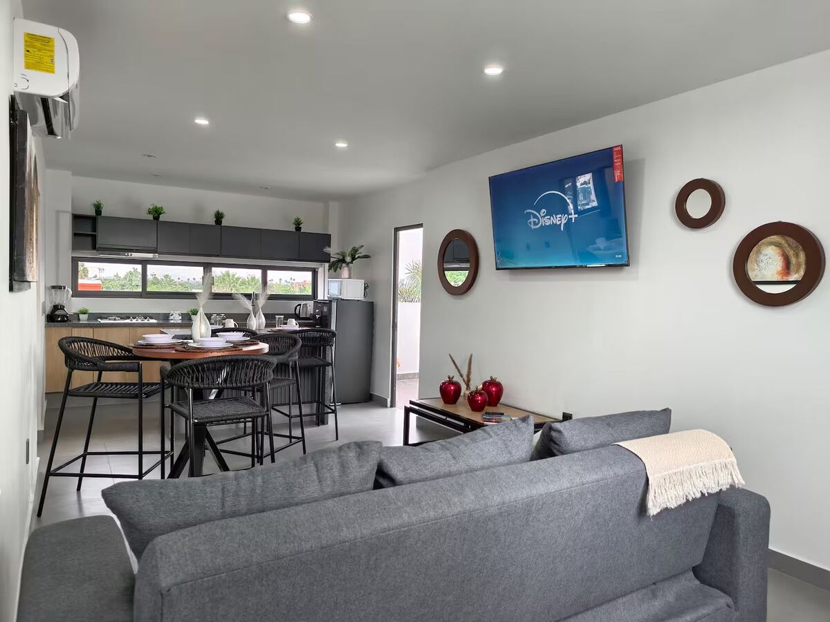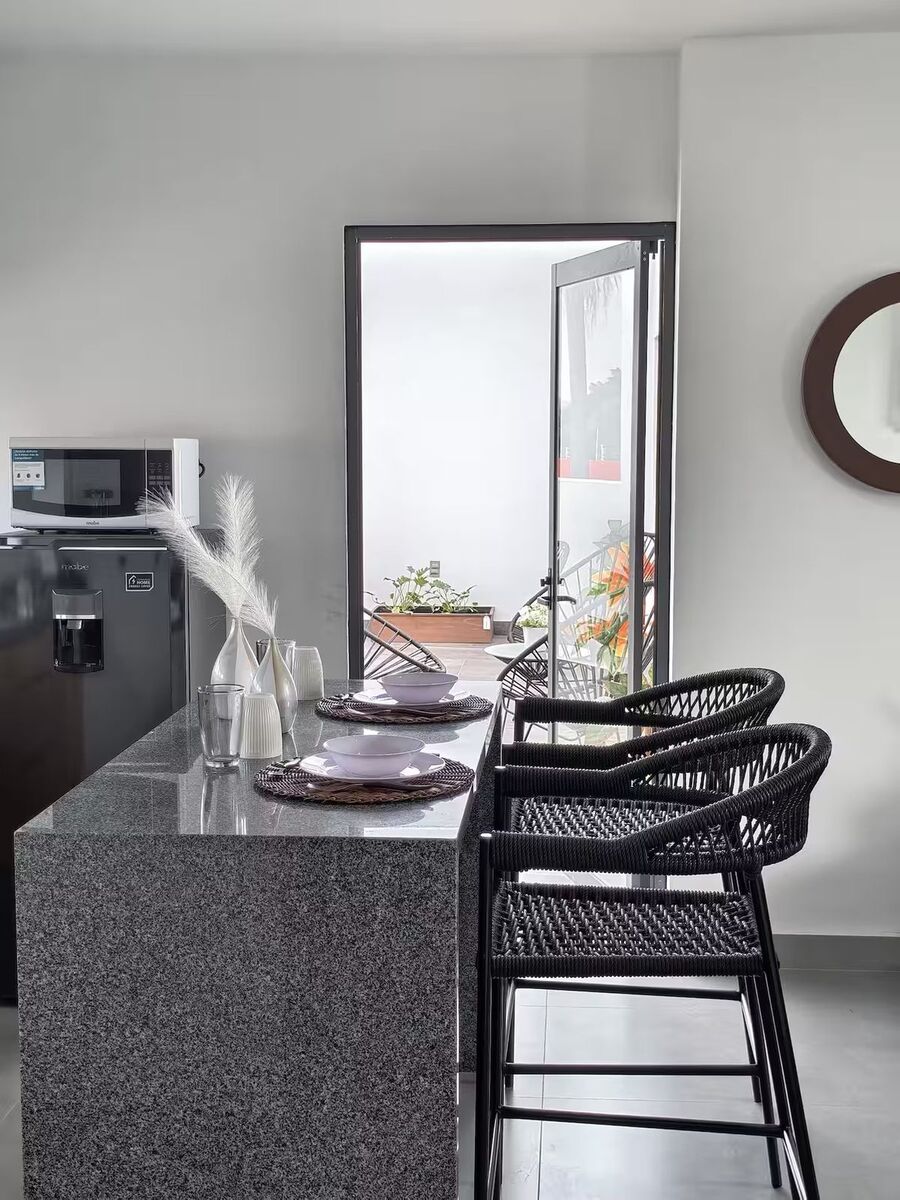 Este moderno y amplio departamento cuenta con 3 habitaciones con camas King Size, sala acogedora, comedor y cocina totalmente equipada.