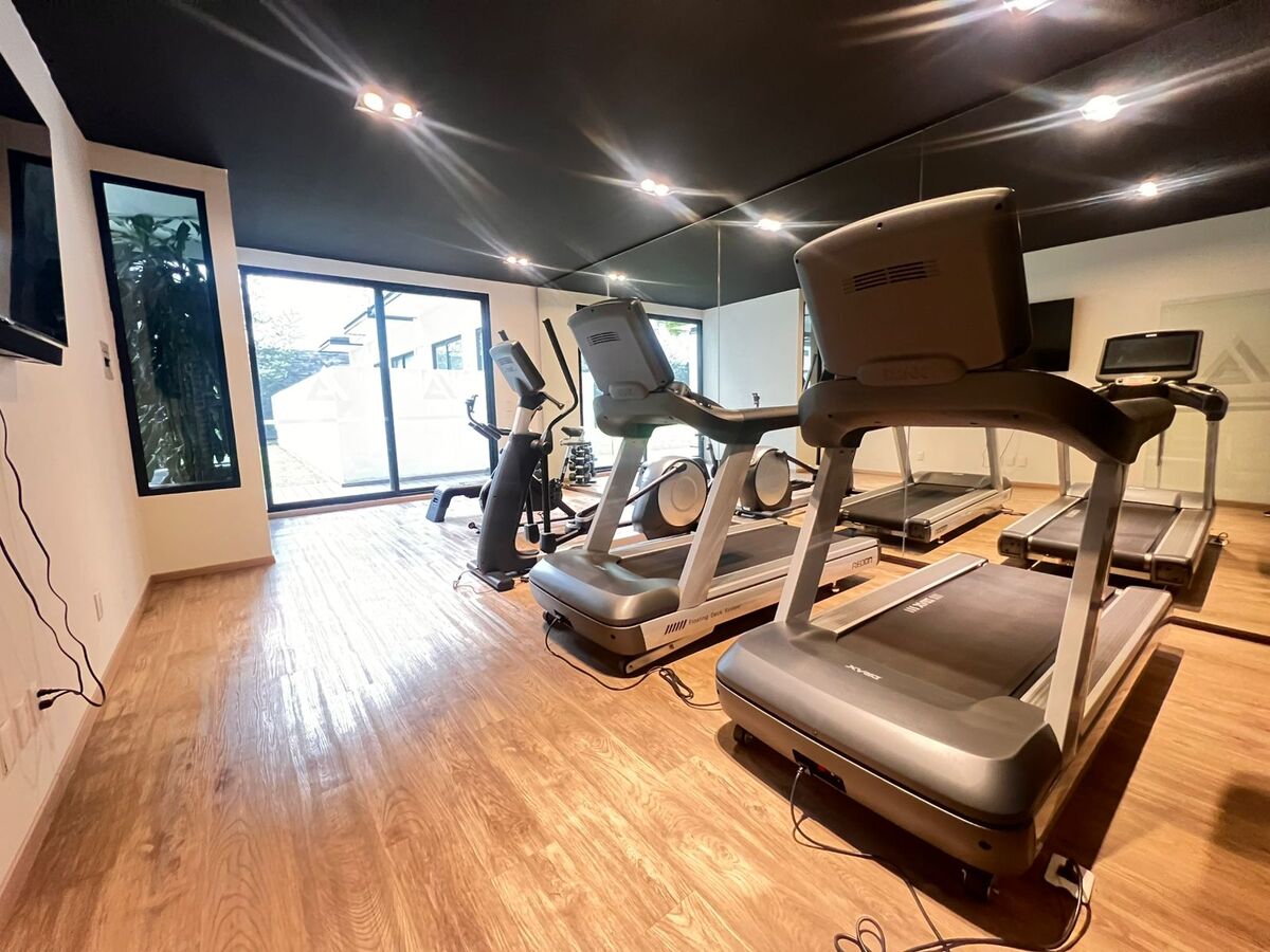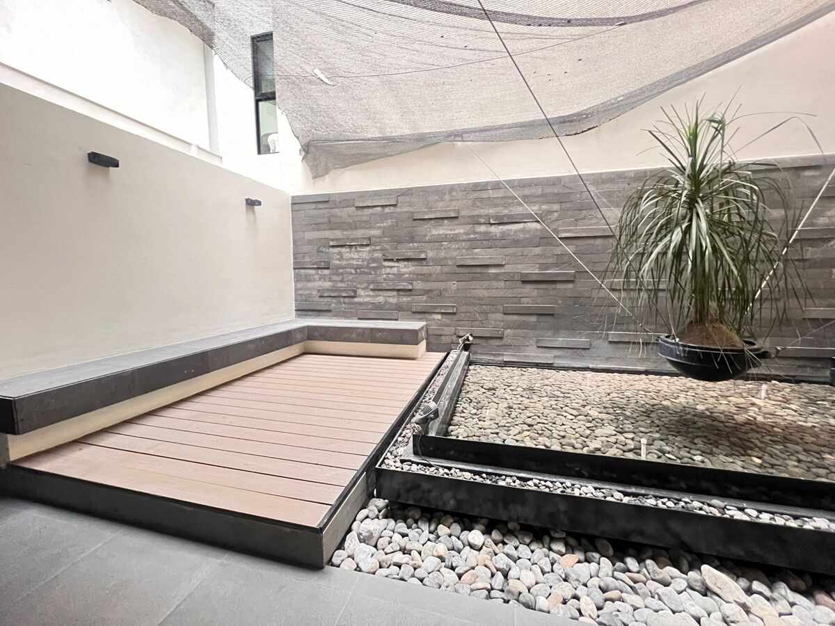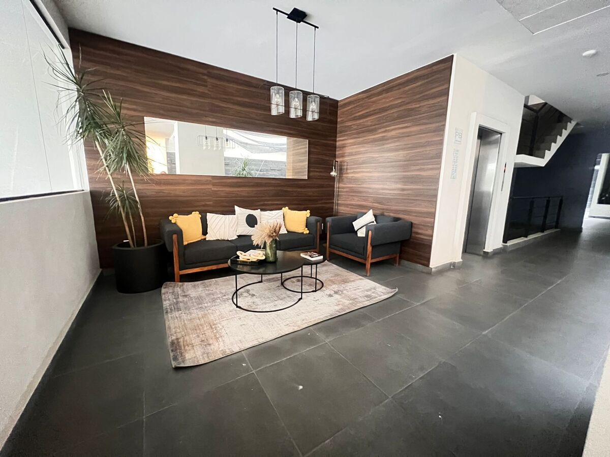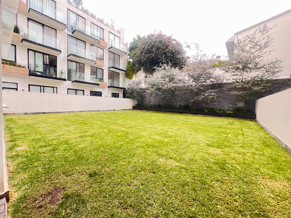 El departamento se encuentra en PB, no a nivel de calle, está distribuido en 2 recamaras, la recamara principal con vestidor y baño, un espacio para área de tv o estudio, estancia amplia, cocina integral y área de lavado integrada al departamento. Tiene 2 estacionamientos y bodega. El residencial cuenta con vigilancia las 24 horas, hall recibidor, pequeño gimnasio, salón de eventos, jardín y en roofgarden una bonita área equipada con muebles y asador.