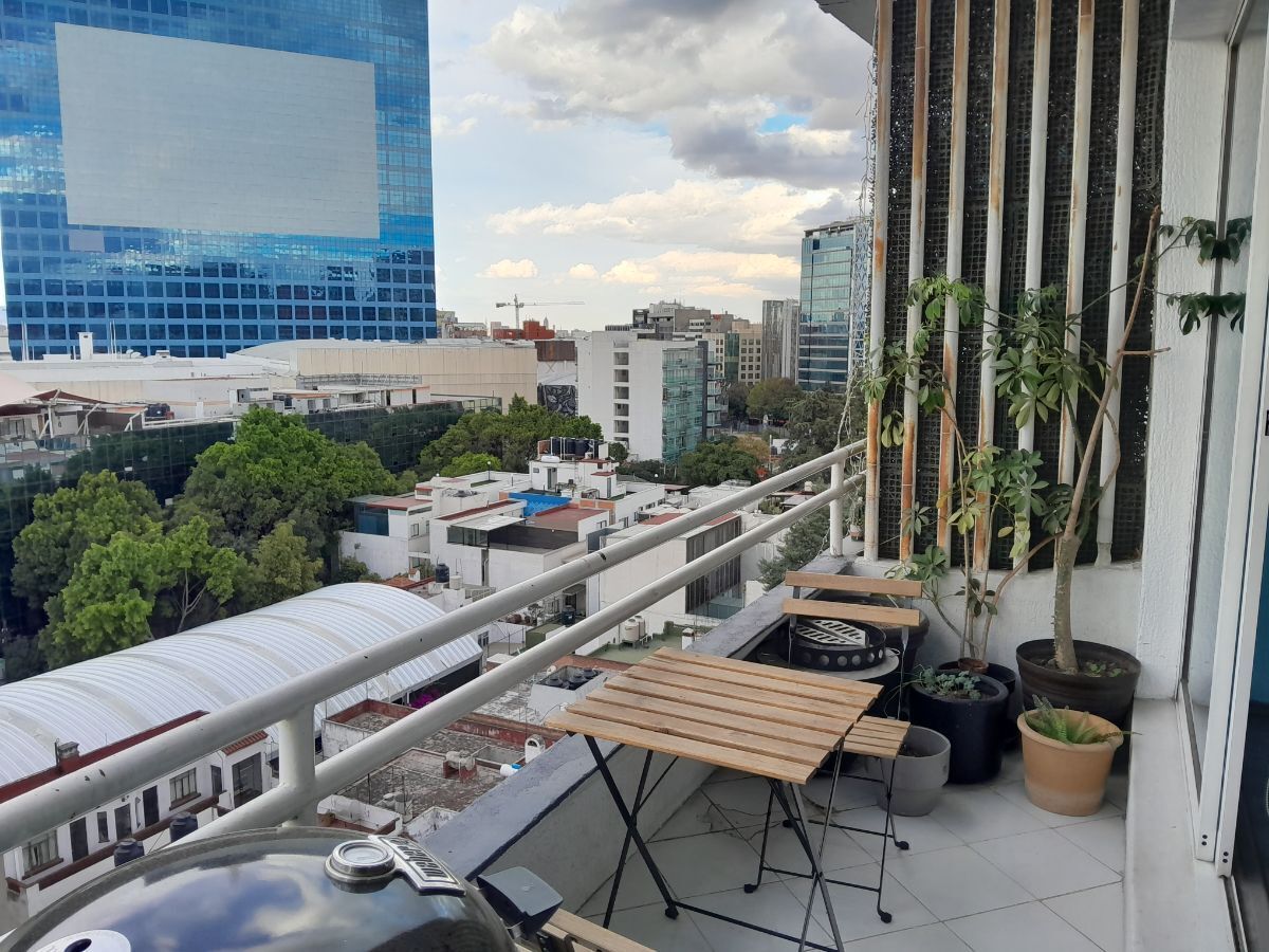Iluminado y espacioso departamento en renta en calle Arkansas a unas cuadras de WTC. Vista panorámica desde un noveno piso Balcón a nivel de estancia Calle tranquila Vigilancia 24/7 Zona segura
