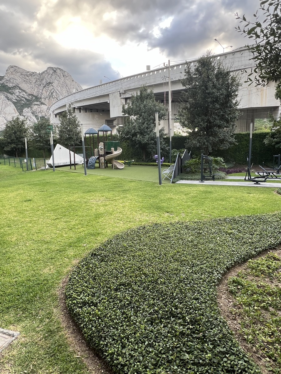Alberca, asadores, salón para eventos, gimnasio, cuarto para TV con simulador de golf para convivir con invitados, juegos infantiles, apartos para ejercitarse al aire libre, area para mascotas. Chapoteadero y fogatero.